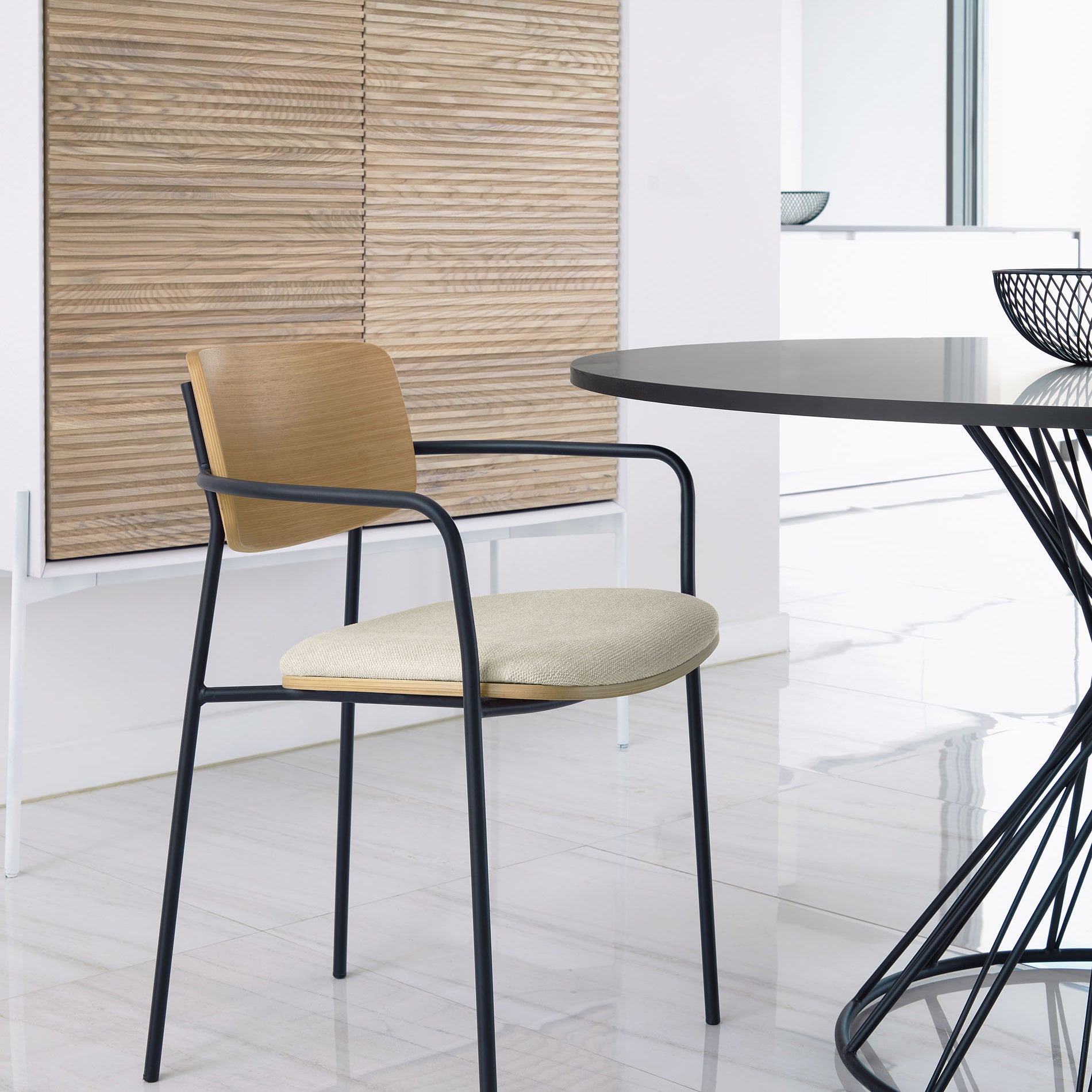 - Tip: combineer de stoel met andere stoelen voor een speels effect!