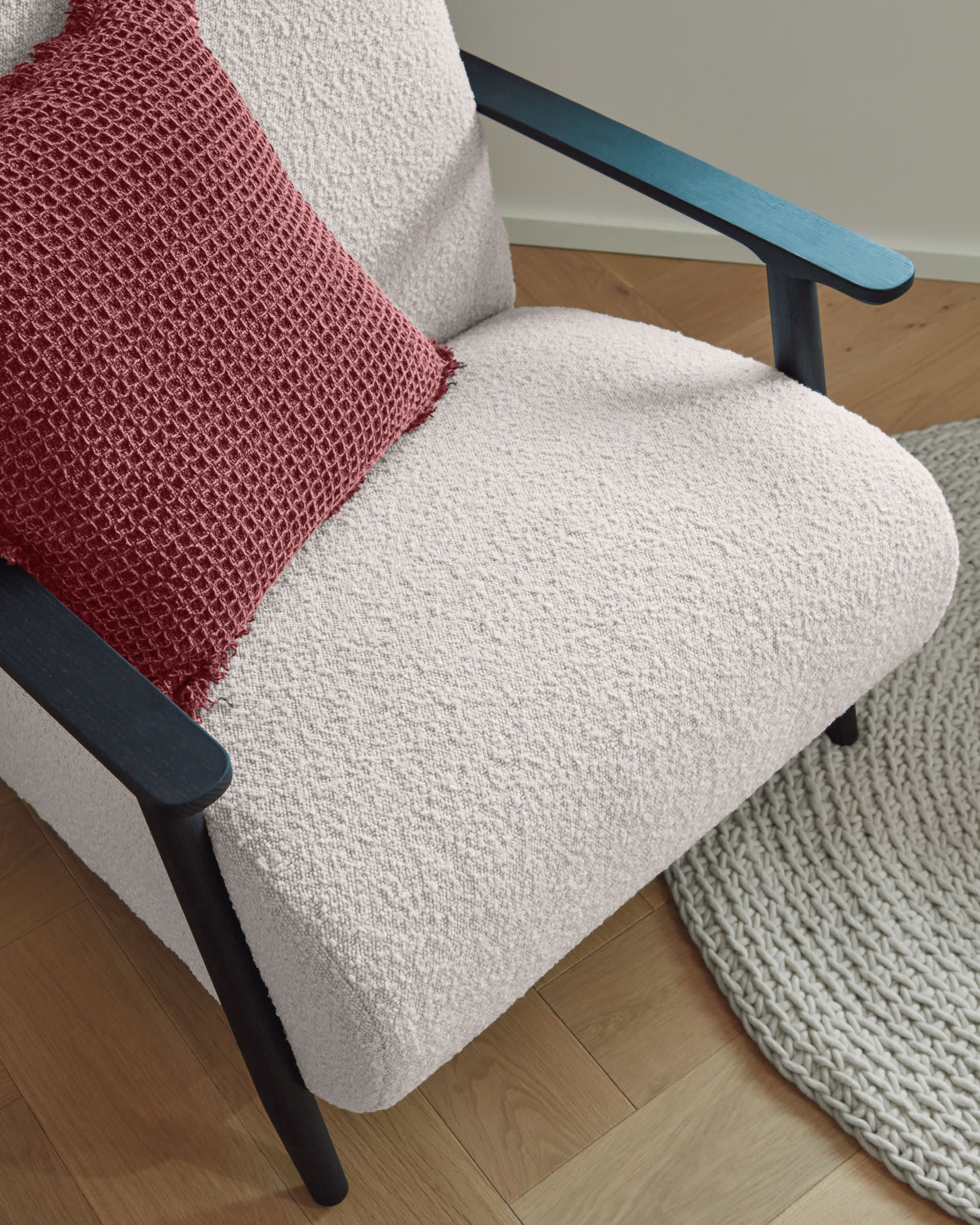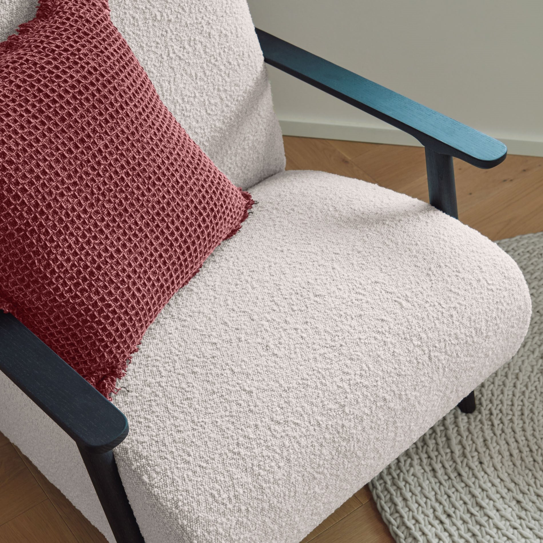 - De zitting is gemaakt van polyester met een shearling bekleding, wengé afwerking