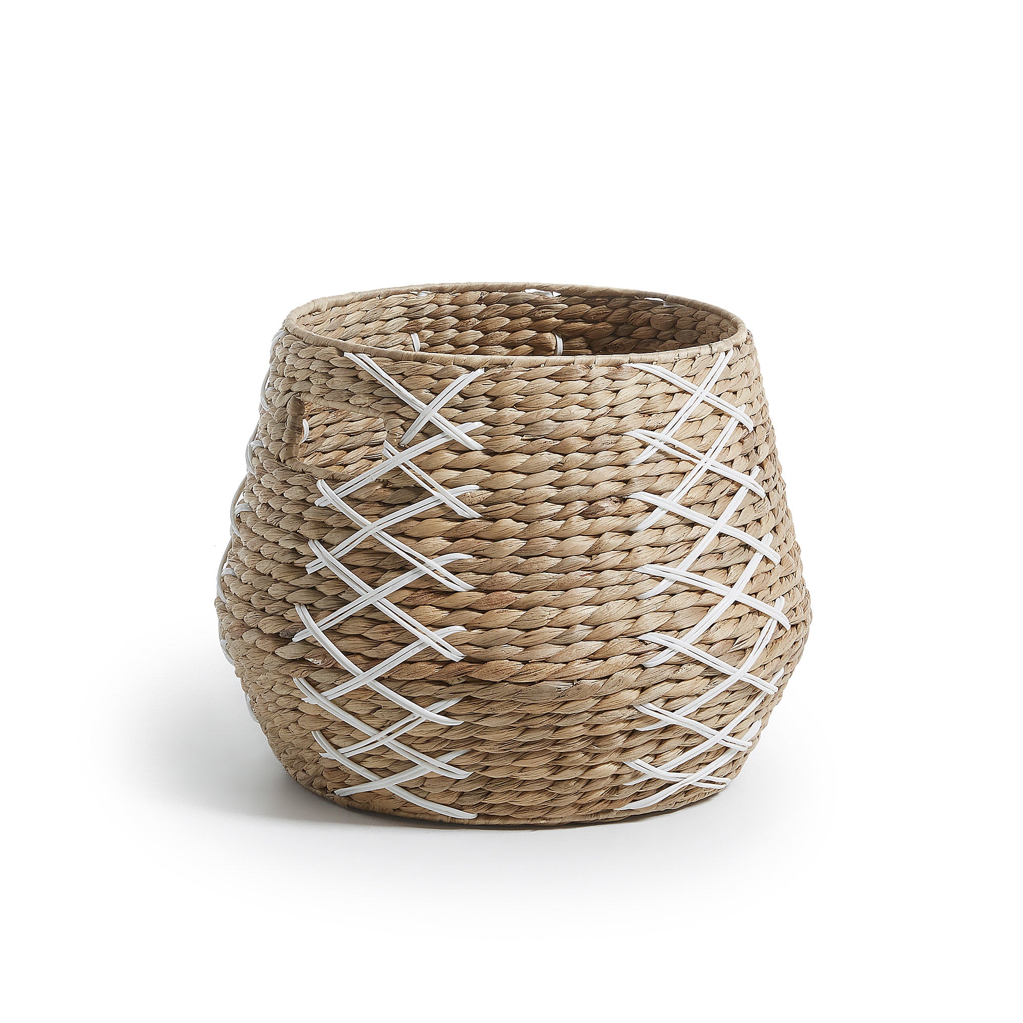 Mand van natuurlijk waterhyacint met gevlochten detail in wit plastic.