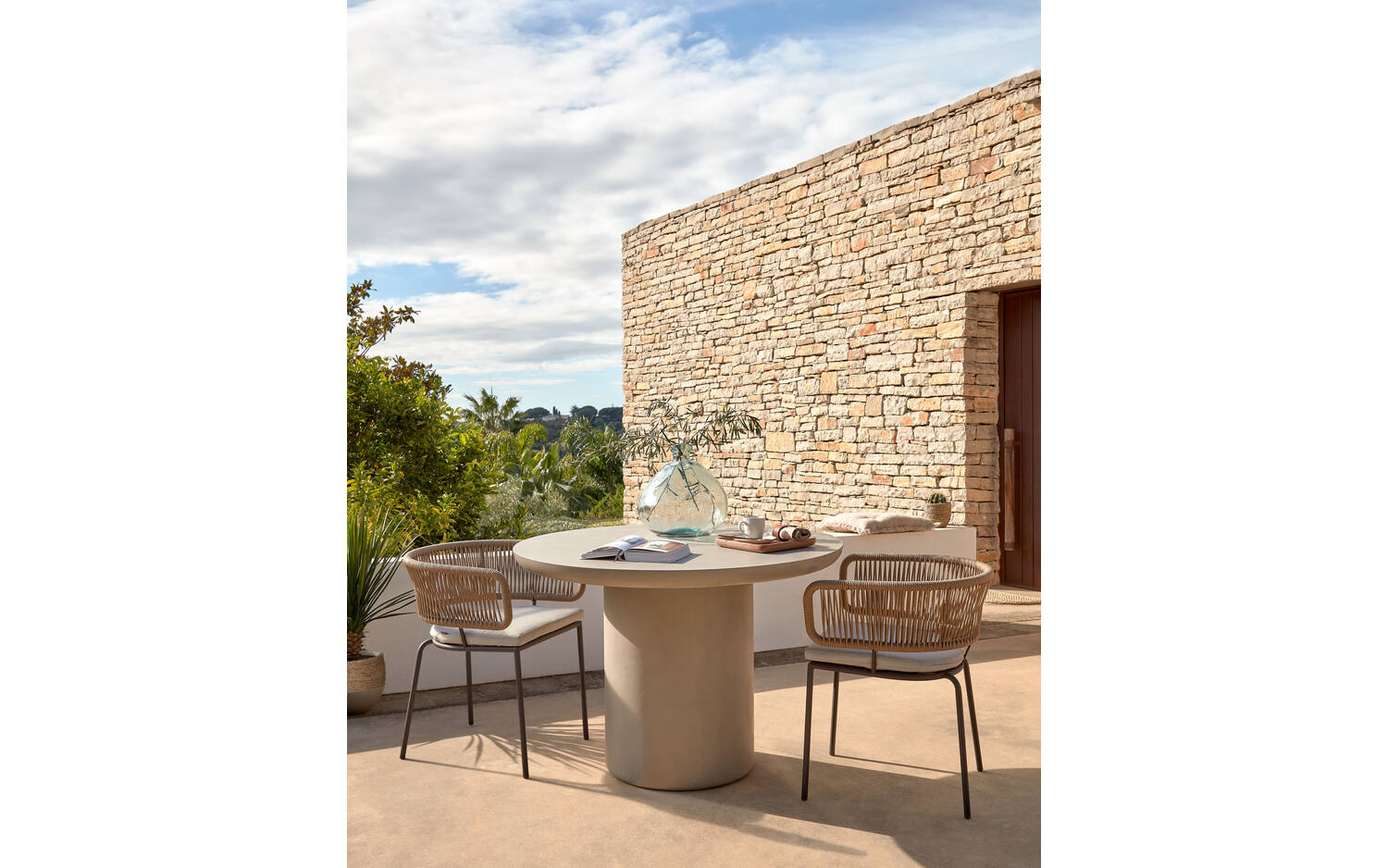 Sta in verbinding met je omgeving dankzij de Nadin collectie en de fusie van gegalvaniseerd staal en handgeweven koord. Maak een stijlstatement in je overdekte buitenruimtes met deze materialen en dé kleur van het moment.