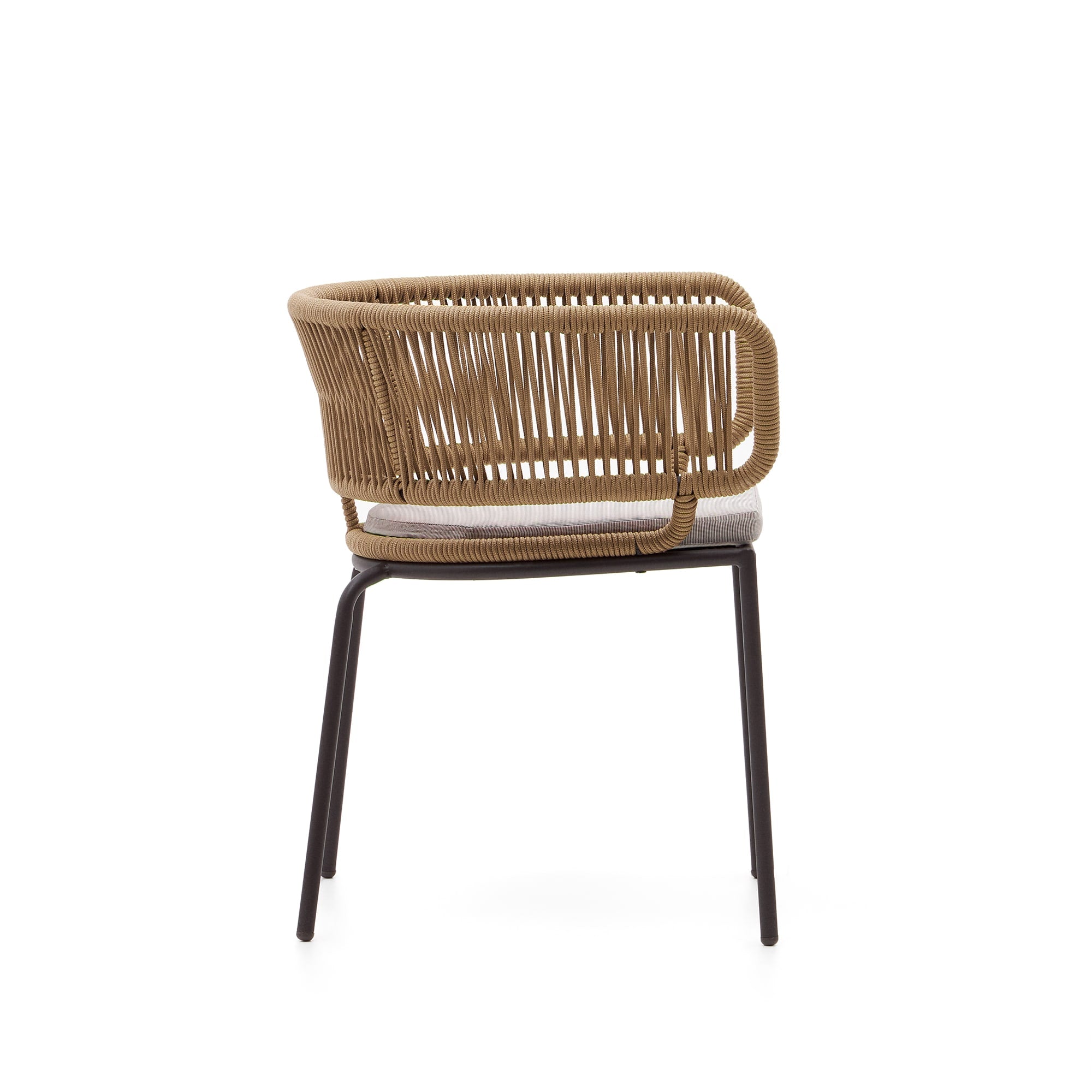 - Stoel met gegalvaniseerd stalen frame met een zitting van riemen en een rugleuning van gevlochten koord.