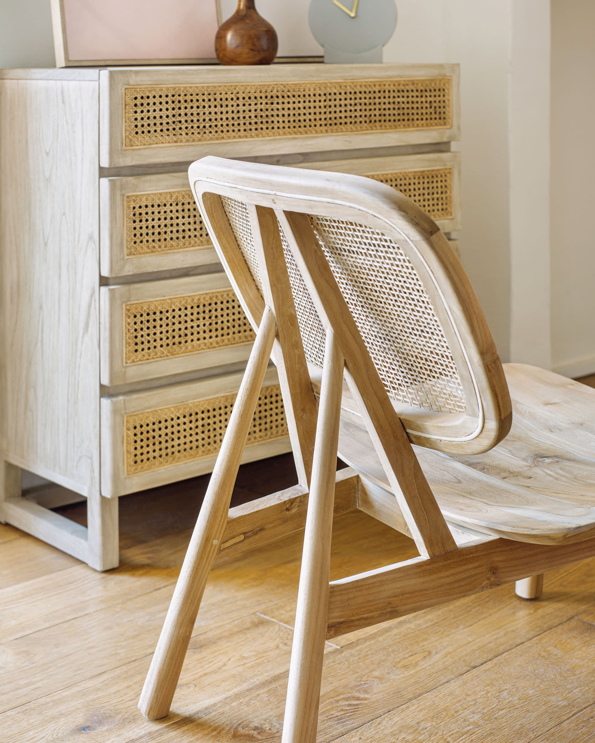 - De zitting en het onderstel is gemaakt van massief teakhout