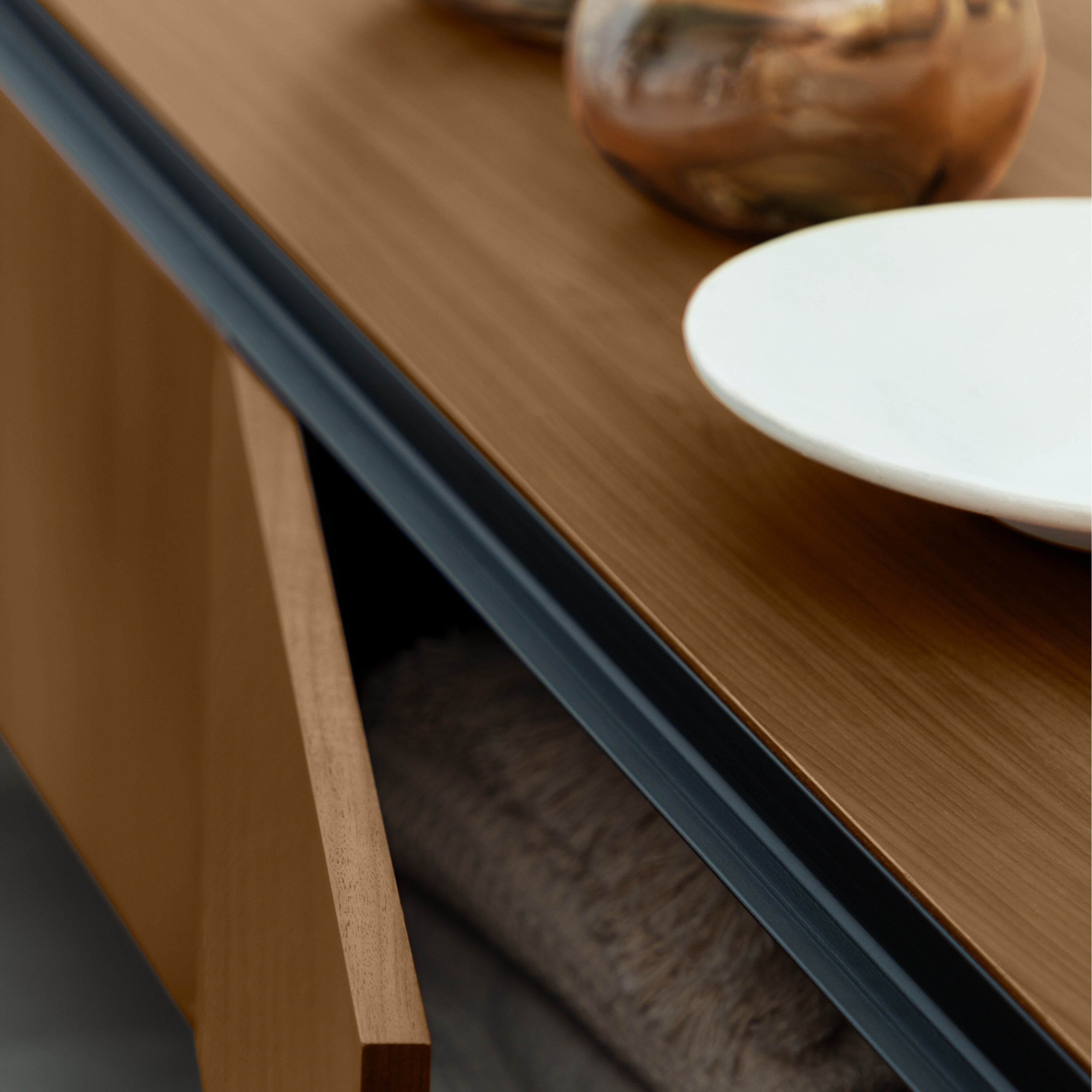 - Hij is gemaakt van MDF en walnootfineer
