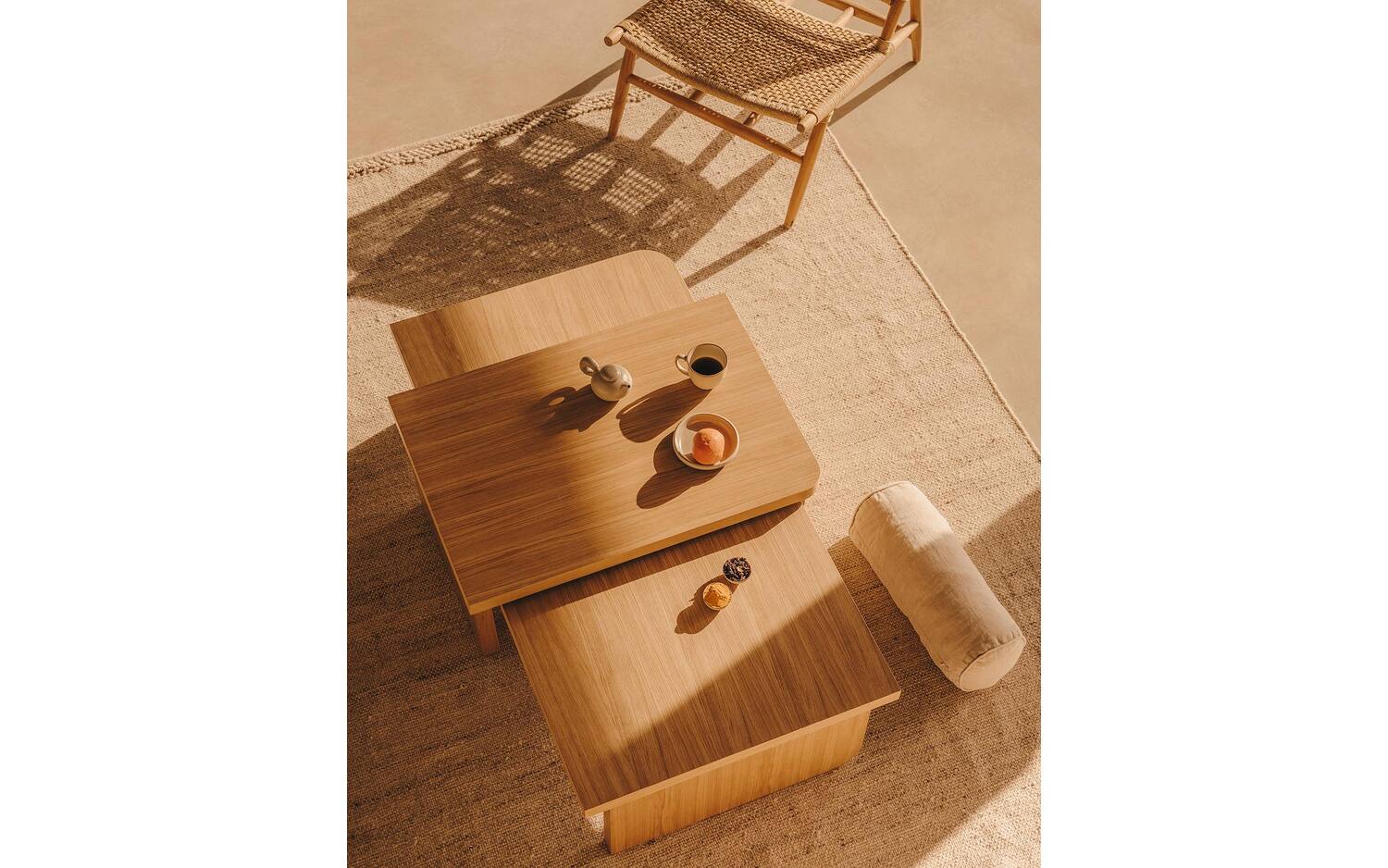 Het team van Kave Home heeft de collectie Oaq ontworpen, die de ware protagonist van uw woonkamer is: het ontwerp in eikenfineer combineert gebogen en rechte lijnen en zorgt voor beweging en vloeiendheid.