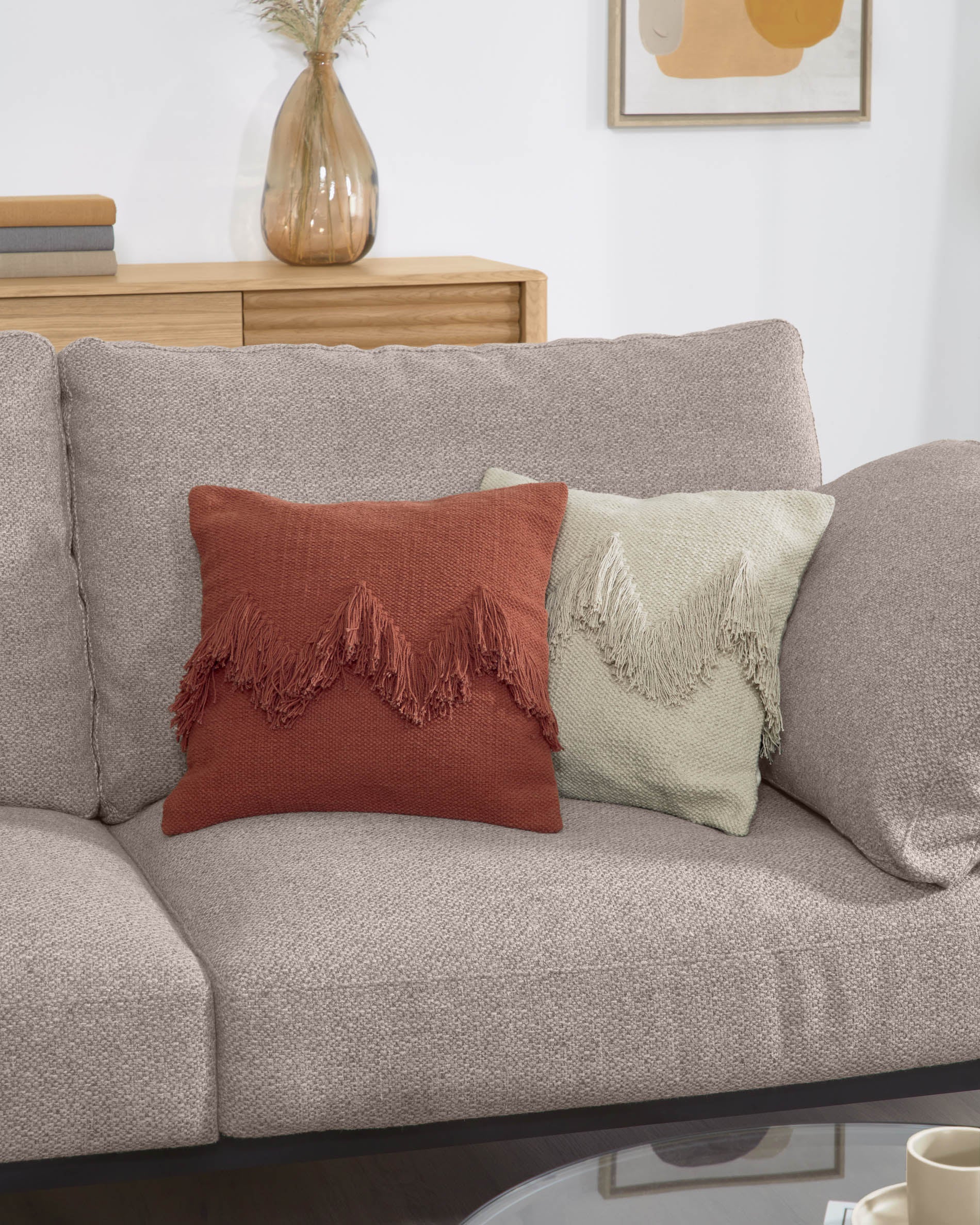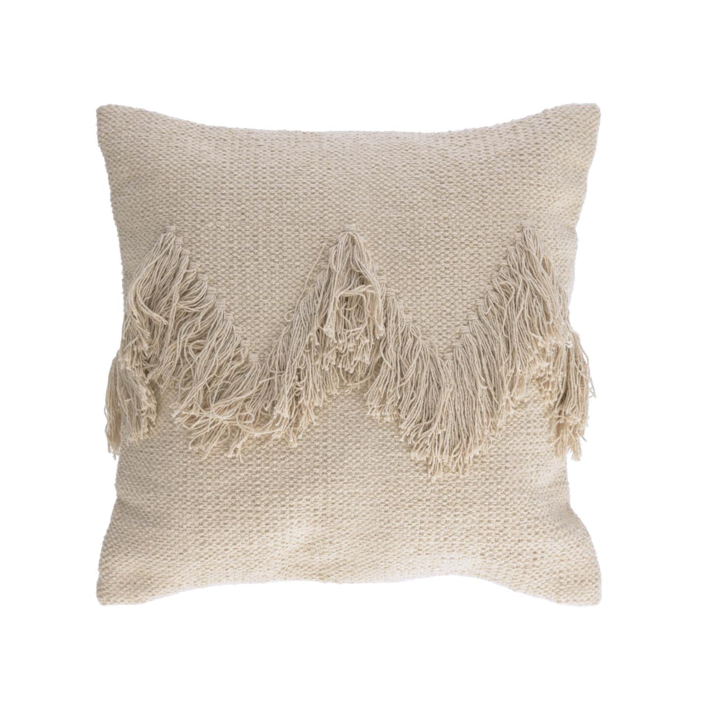 De franjes en patronen maken deze 100% katoenen kussenhoes een must have. Voeg een trendy gevoel en comfort toe aan je relax zones. De neutrale tinten zien er het hele jaar door geweldig uit.