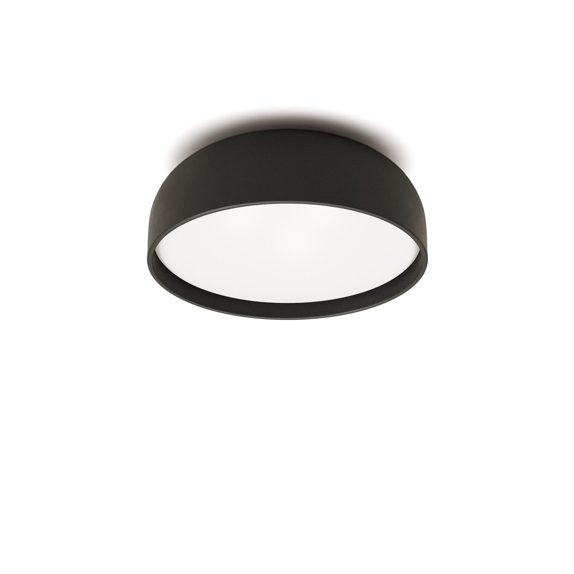 - Kunststof plafondlamp met zwarte afwerking.