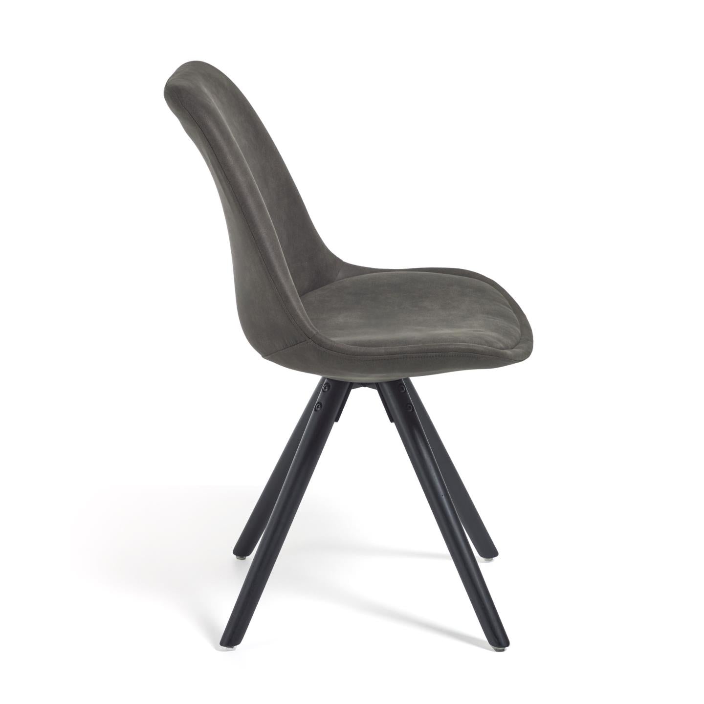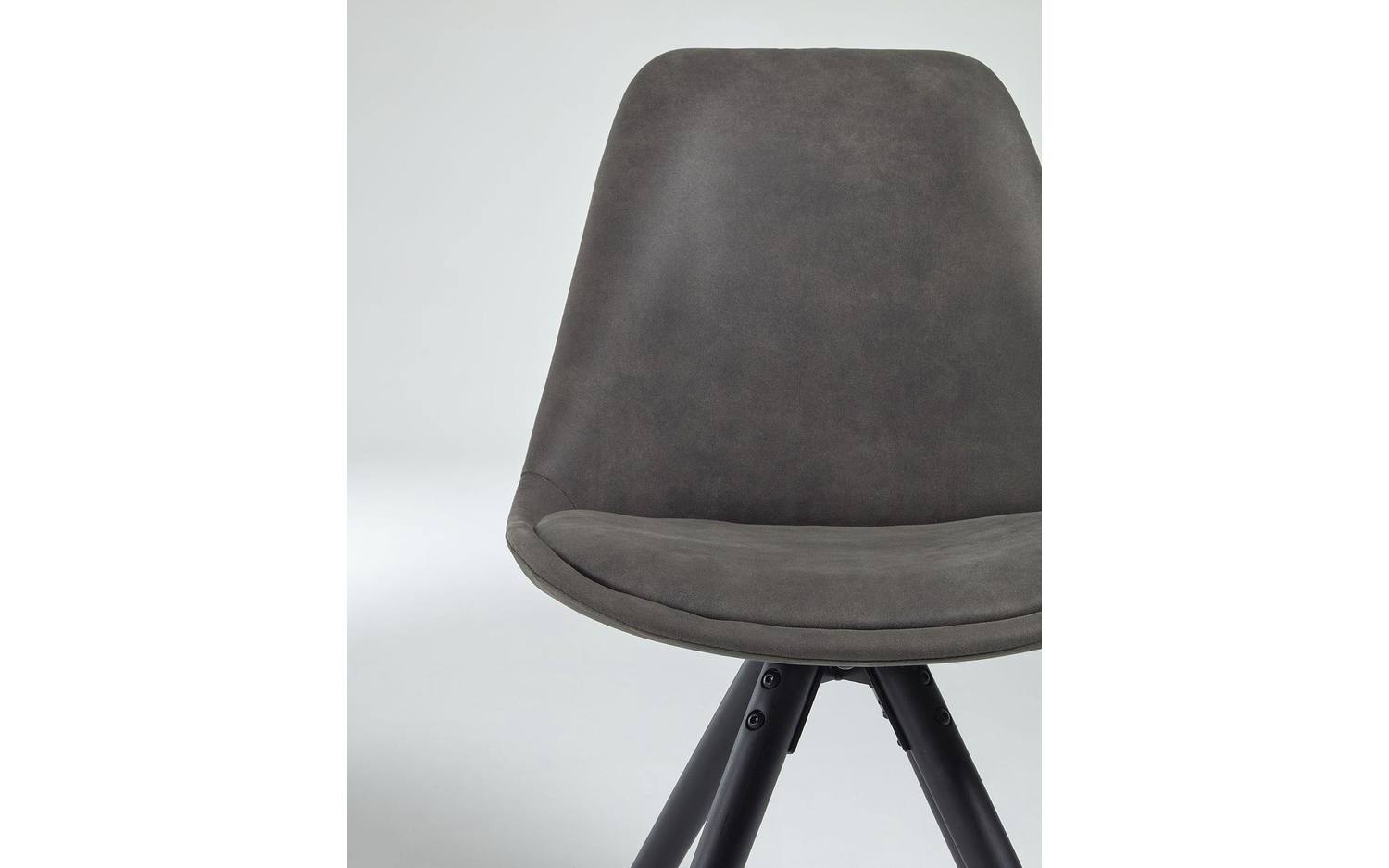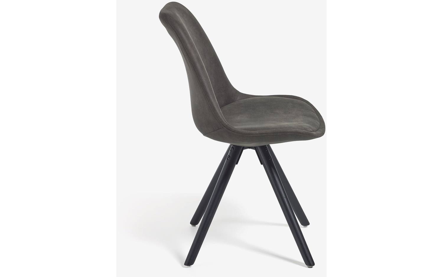 - Eetkamerstoel met bekleding in donkergrijs.