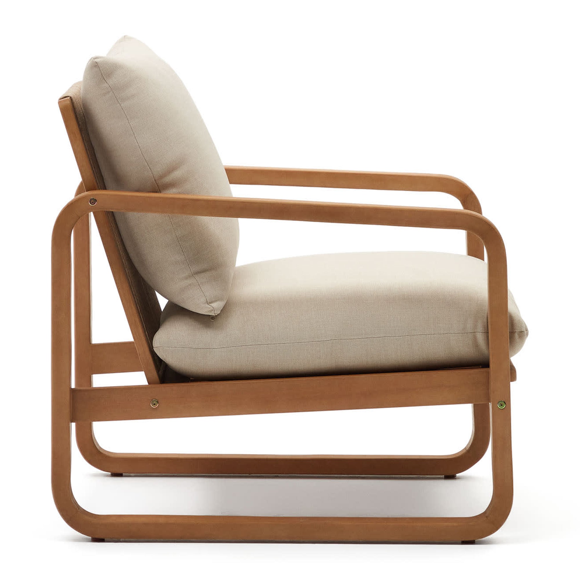 - Eucalyptus massief houten fauteuil met natuurlijke afwerking.