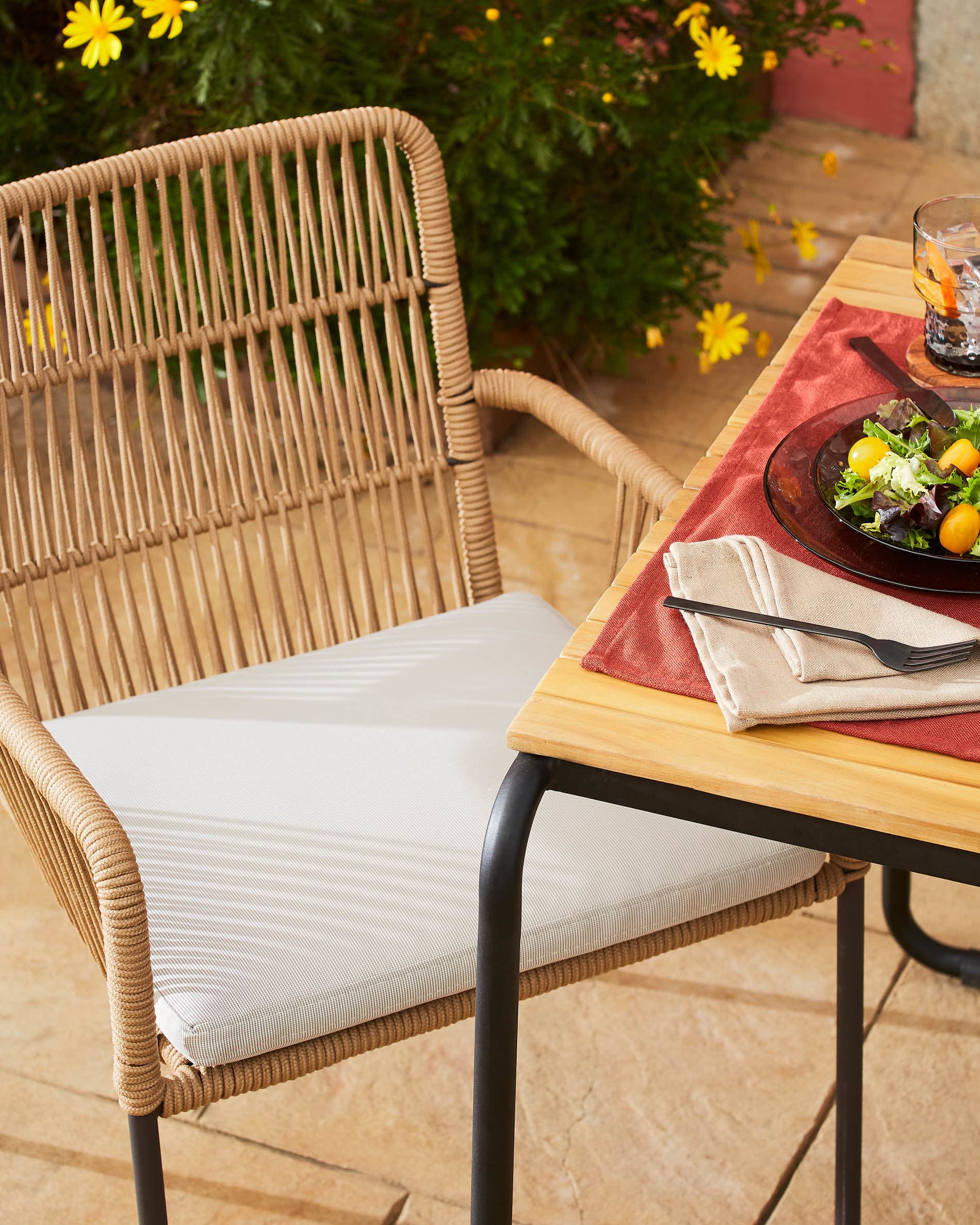 - Stoel met zitting van UV-bestendig, met de hand gevlochten touw.