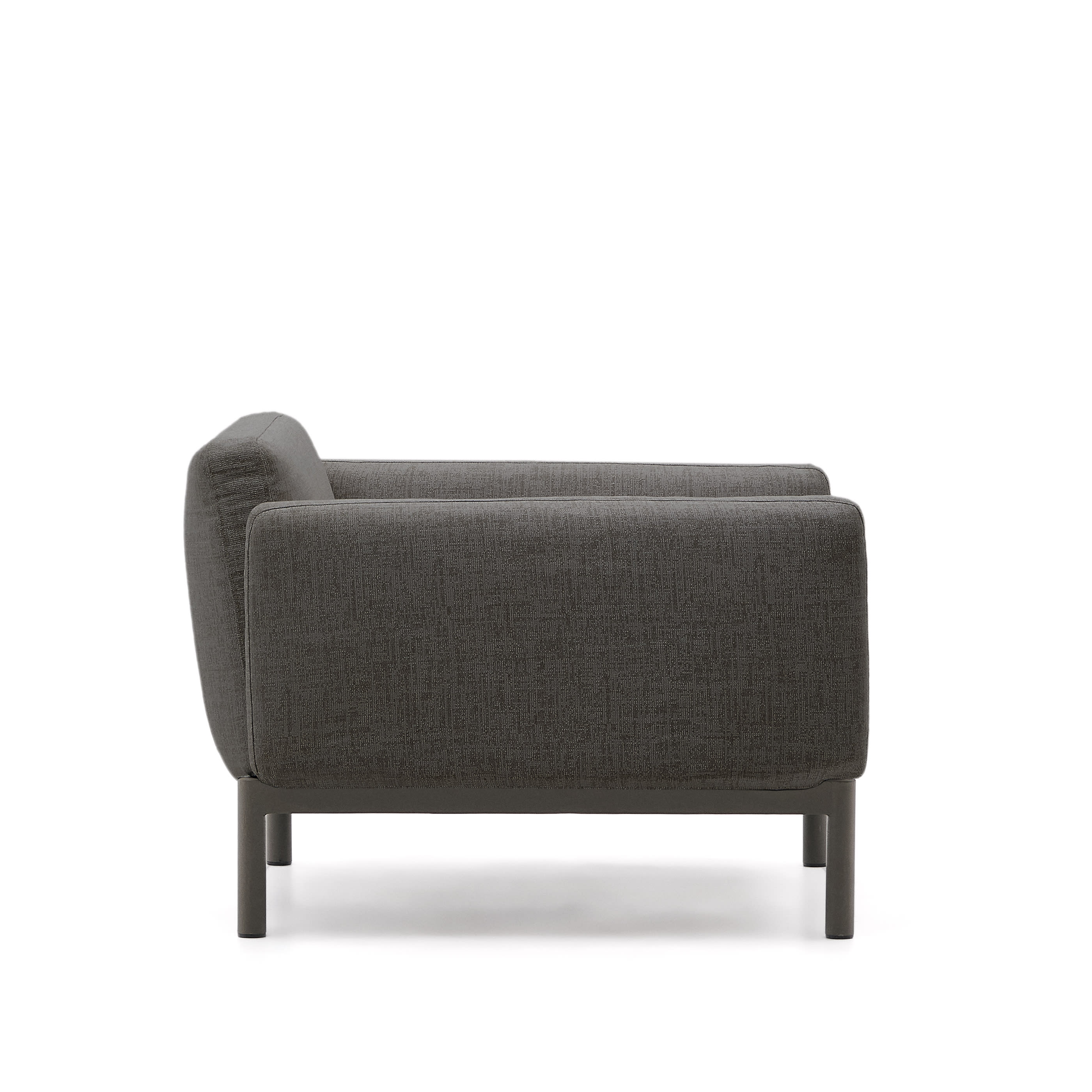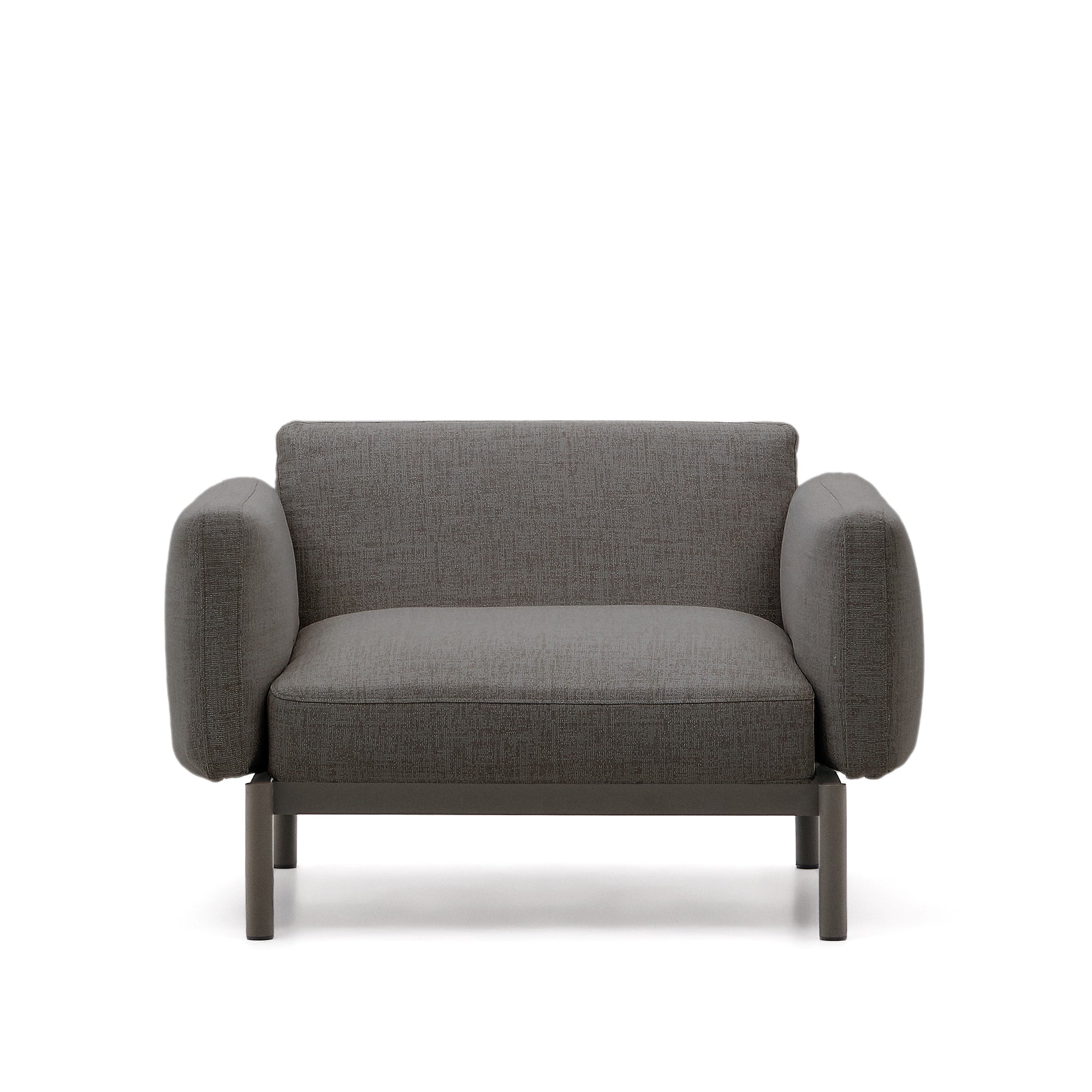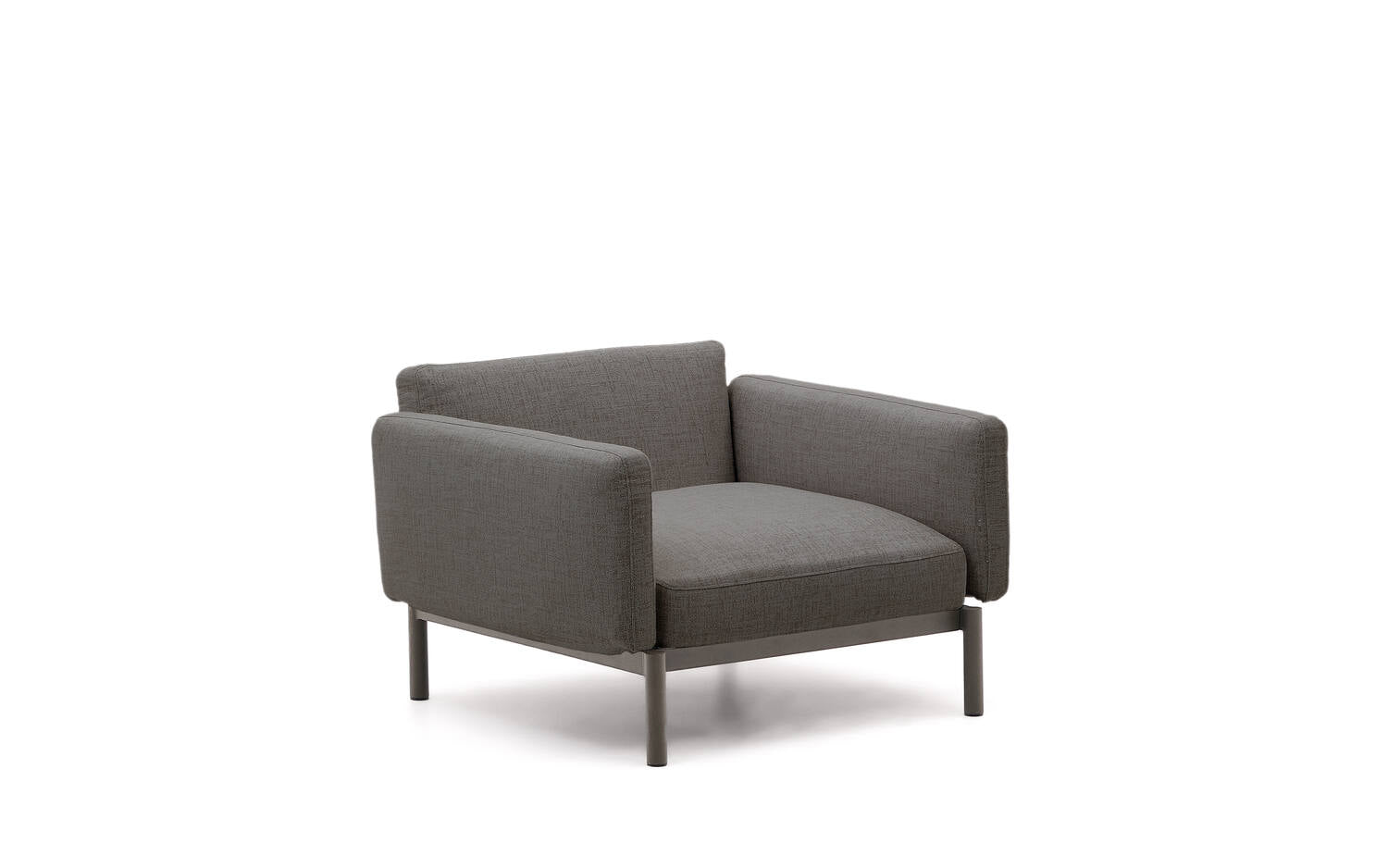 - Sorells modulaire buitenfauteuil met donkergrijze bekleding en aluminium frame afgewerkt in grijs.