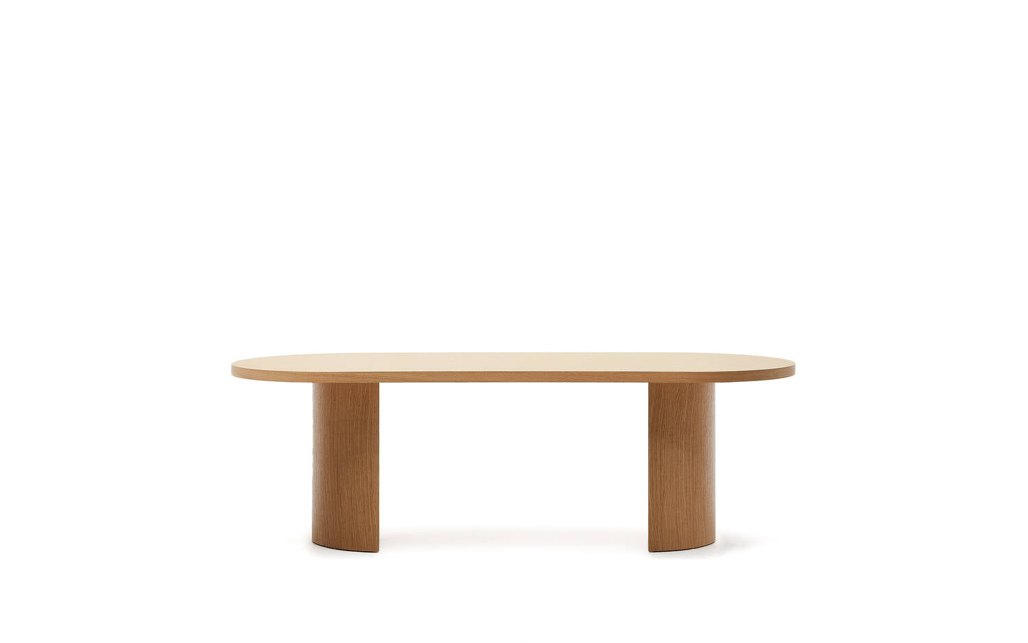 Nealy is de prefecte balans tussen eenvoud en flexibiliteit. Het ontwerp is sculpturaal met ronde en rechte lijnen en je kunt de poten in twee posities monteren om je eigen ontwerp te maken. In het eikenfineer zie je goed de nerven van het hout.
