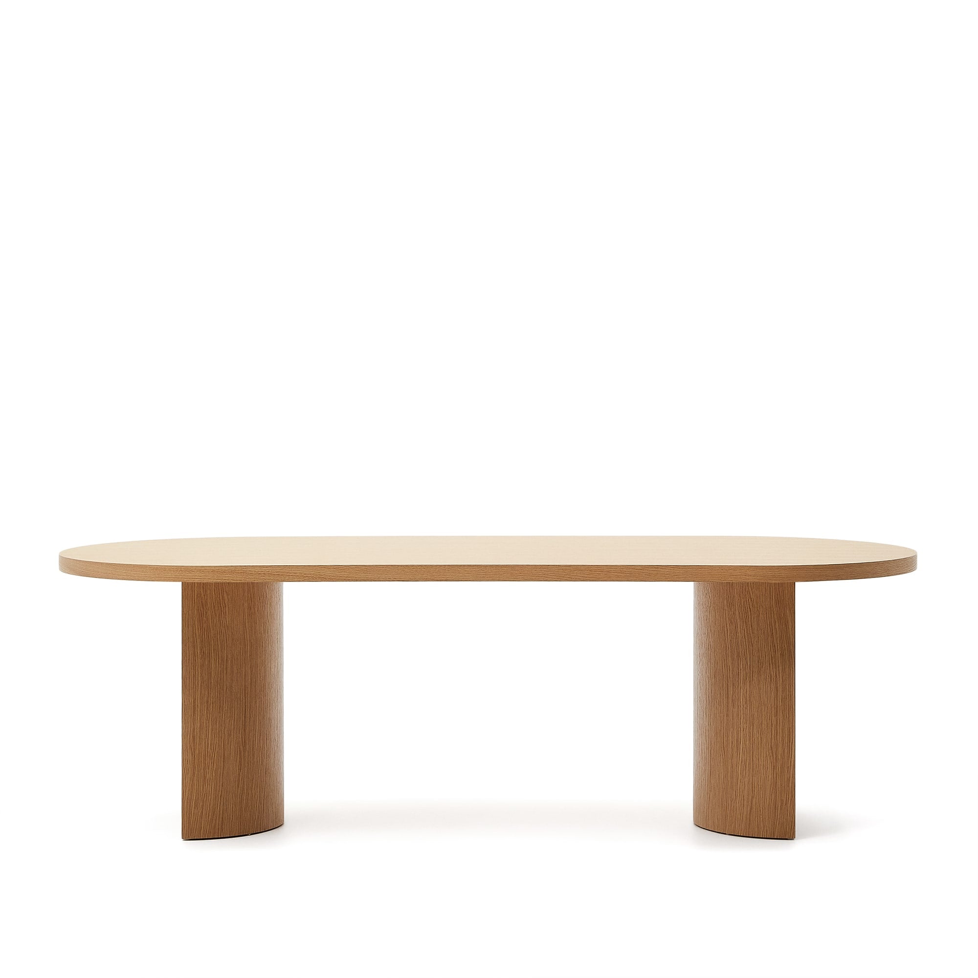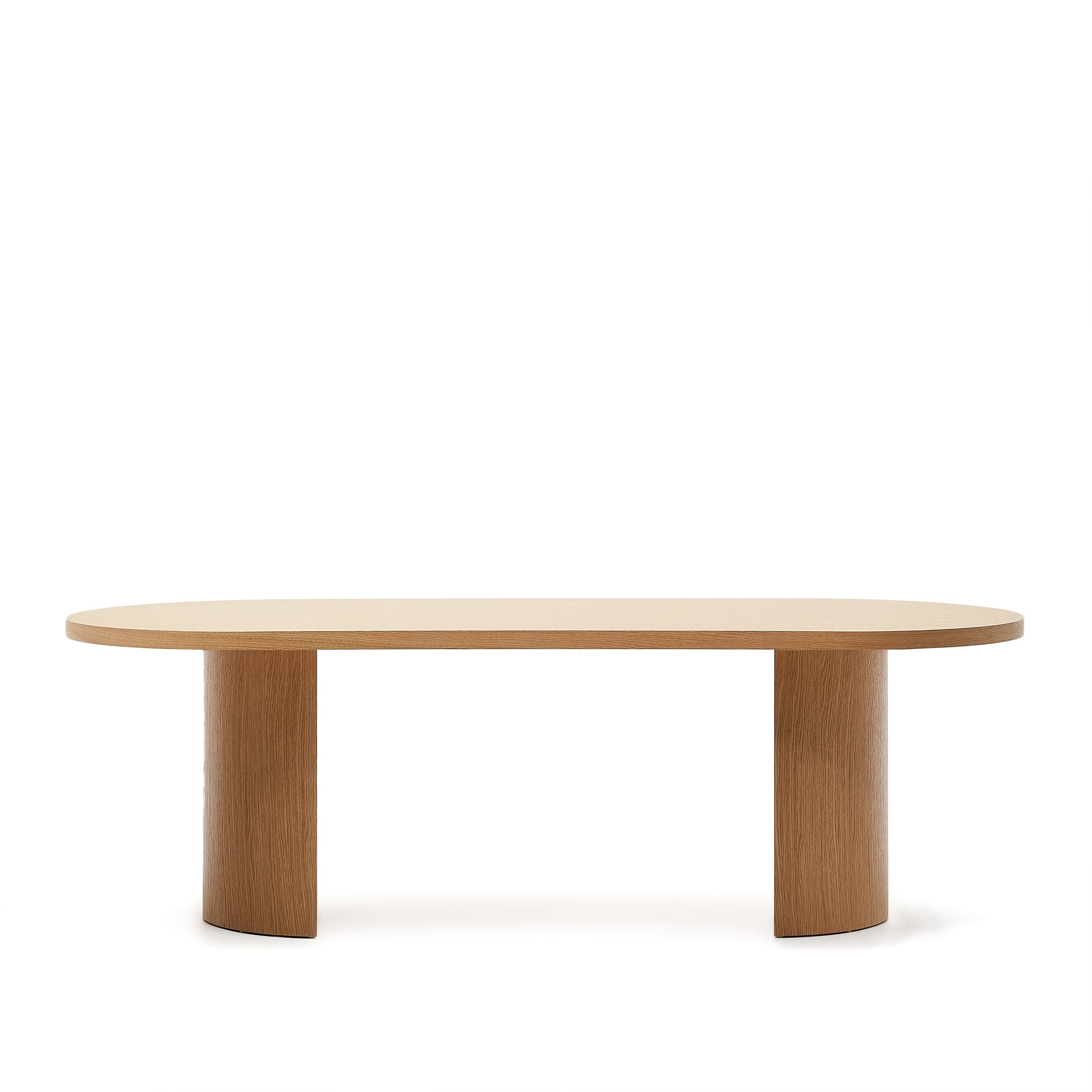 - Eettafel van eikenfineer met een natuurlijke afwerking.