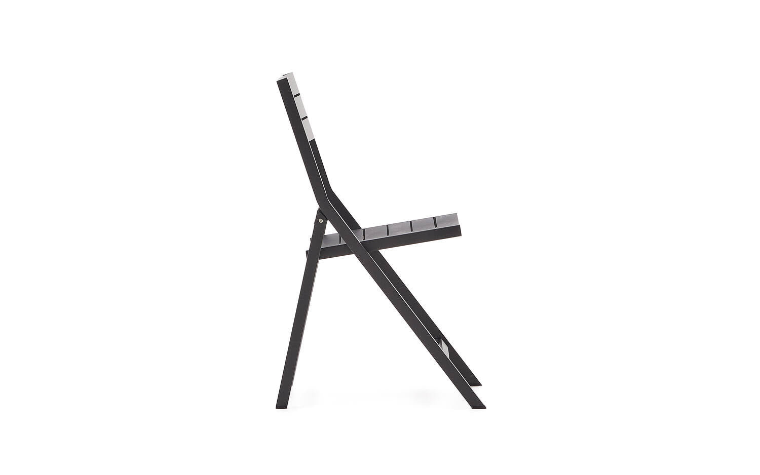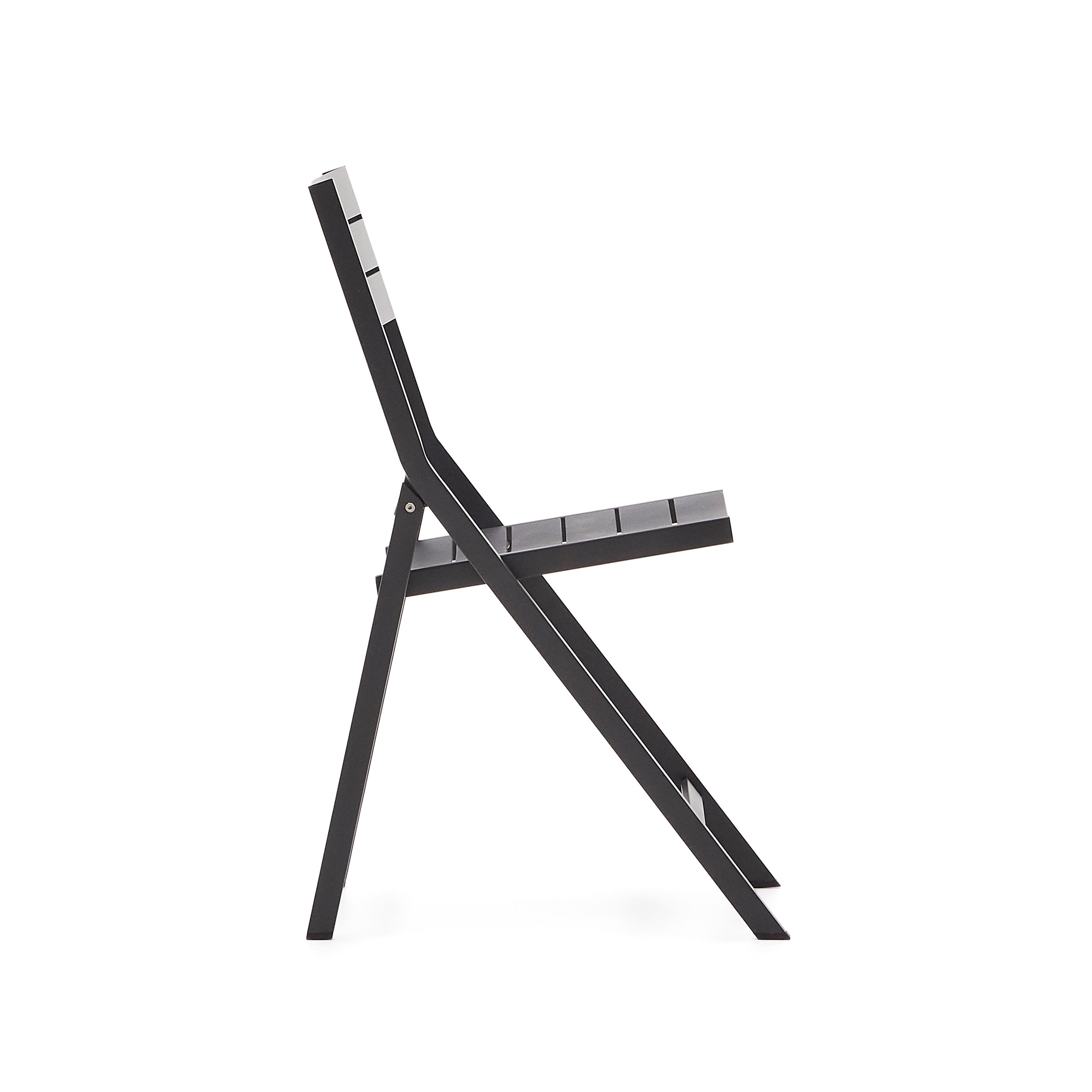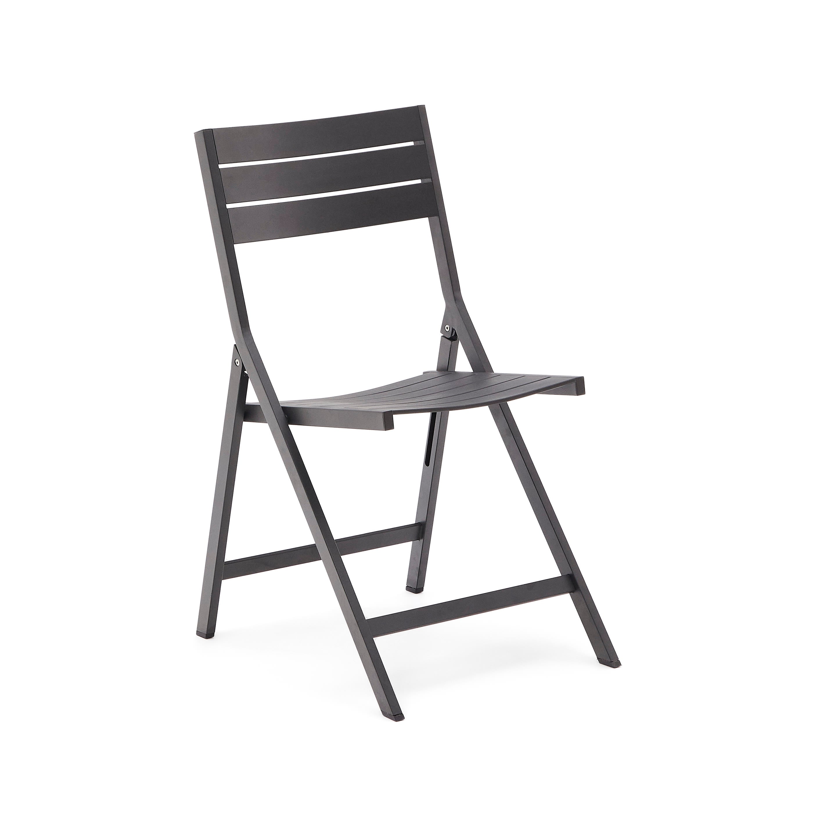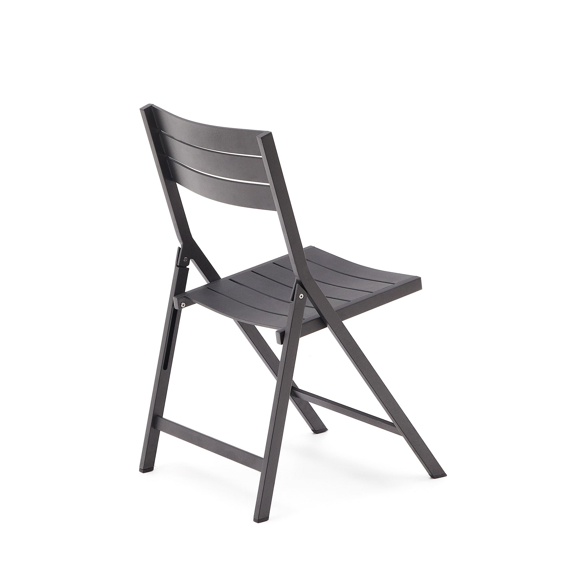 - Opvouwbare stoel gemaakt van aluminium met een donkergrijze afwerking.