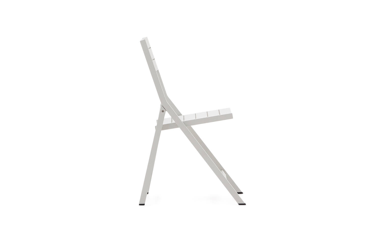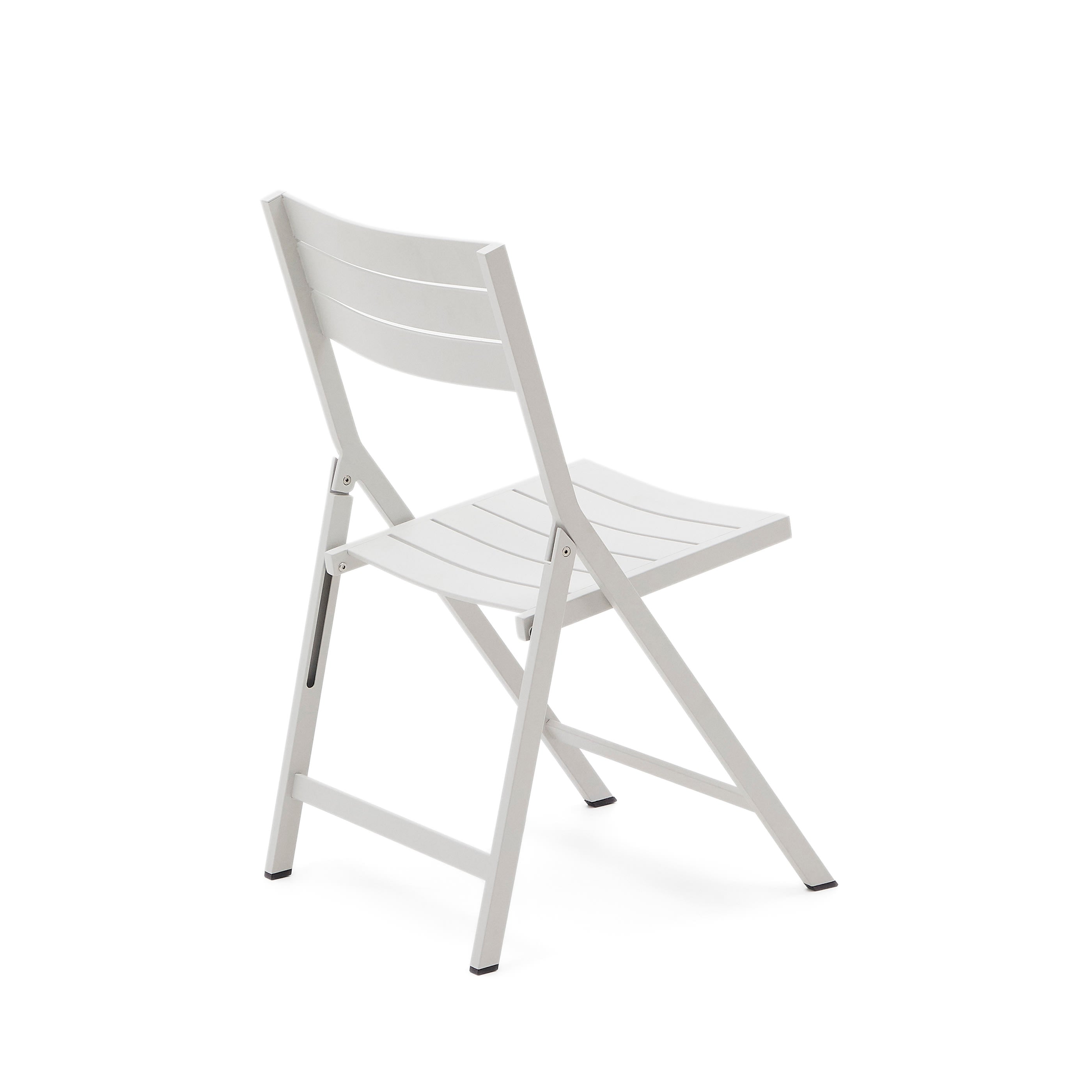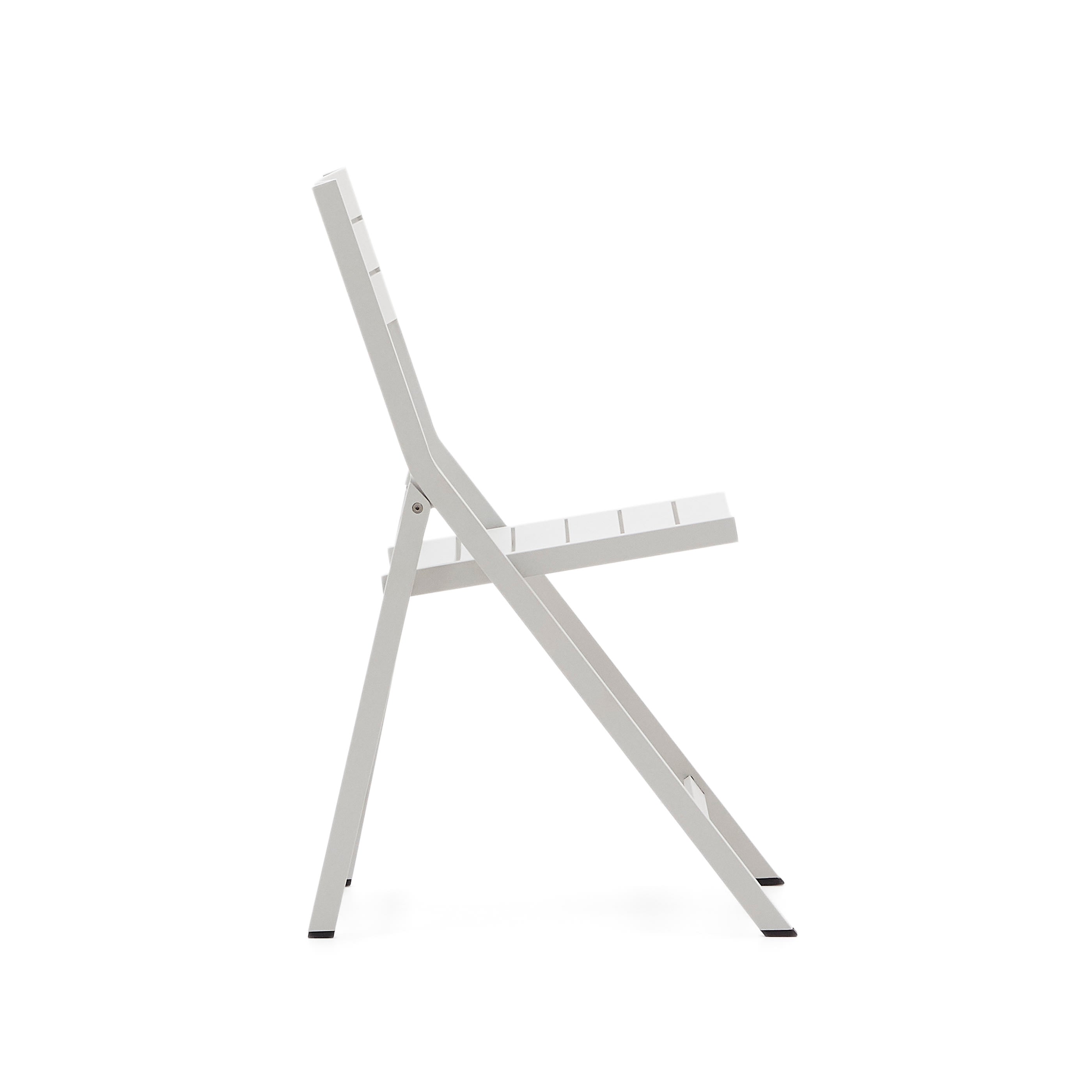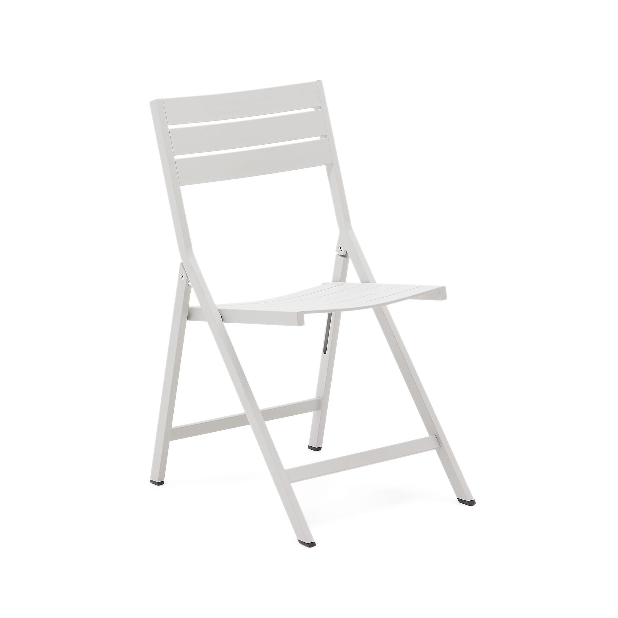- Opvouwbare stoel gemaakt van aluminium met een lichtgrijze afwerking.