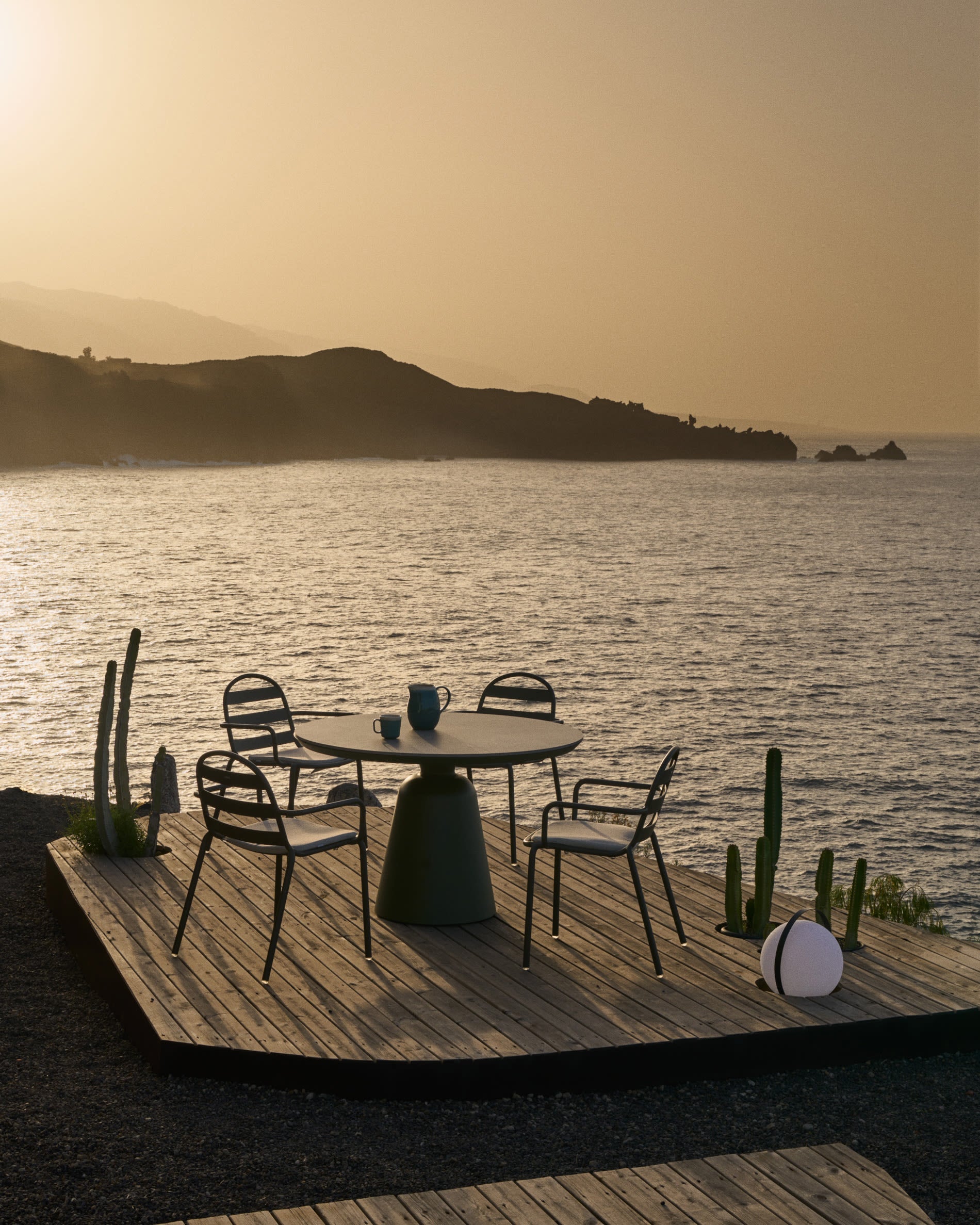 De collectie Tudons heeft een aluminium onderstel en een tafelblad van keramiek. Met deze combinatie van duurzaamheid en elegantie maak je een mooi plekje om buiten van te genieten. Een inspiratiebron voor stijlvolle en duurzame momenten buiten.