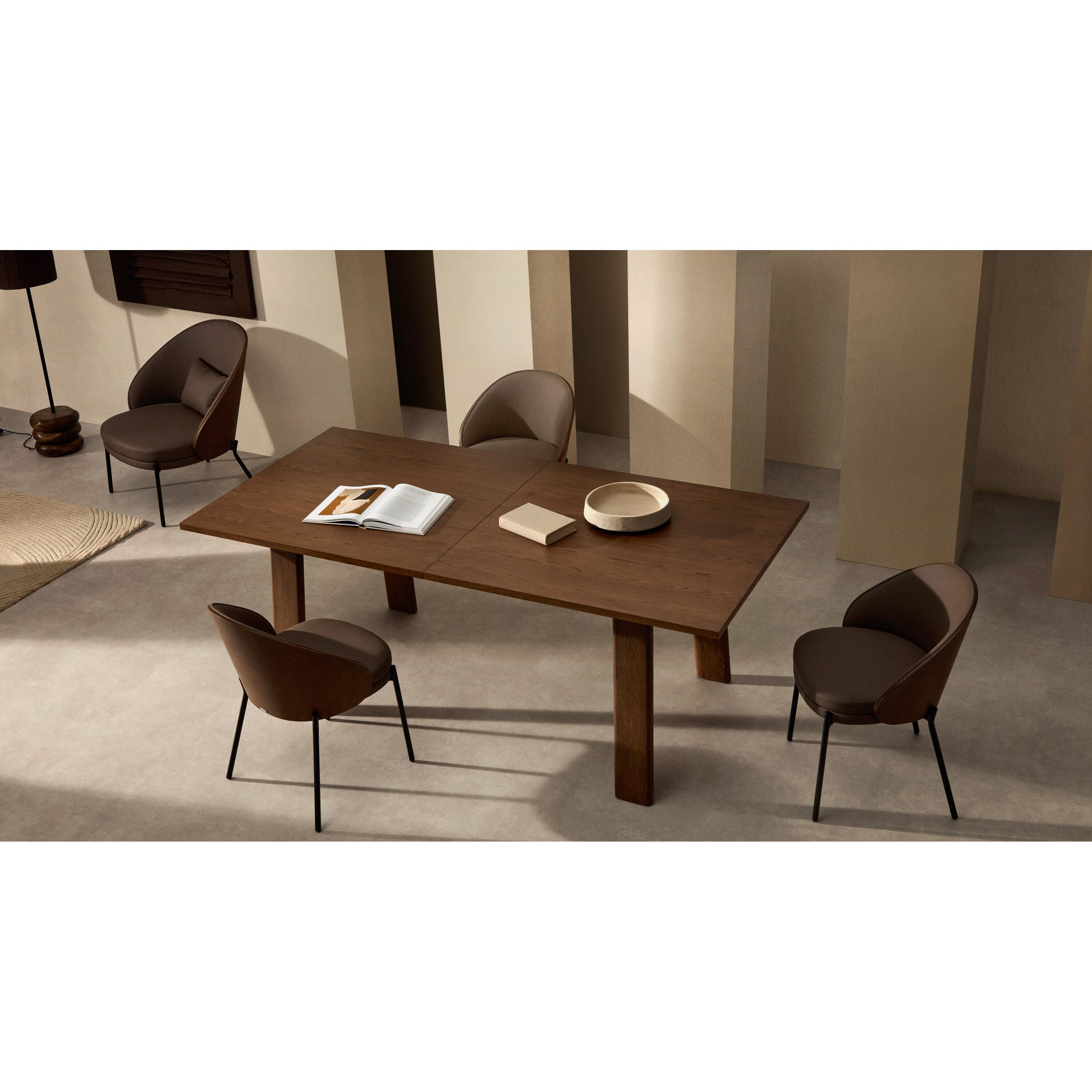 Benut de ruimte van je eetkamer optimaal met de uitschuifbare tafel Arlen. Omdat je het formaat van de tafel aan kunt passen is hij ideaal voor elke gelegenheid. Bovendien past het eikenhouten ontwerp met fineer heel goed in zeer uiteenlopende ruimte s.