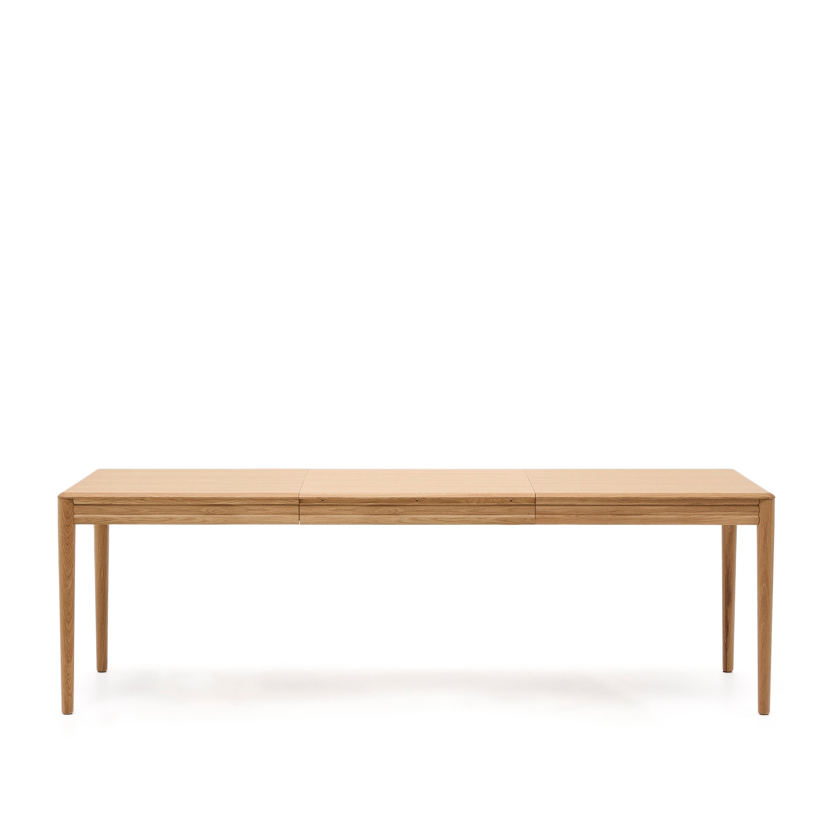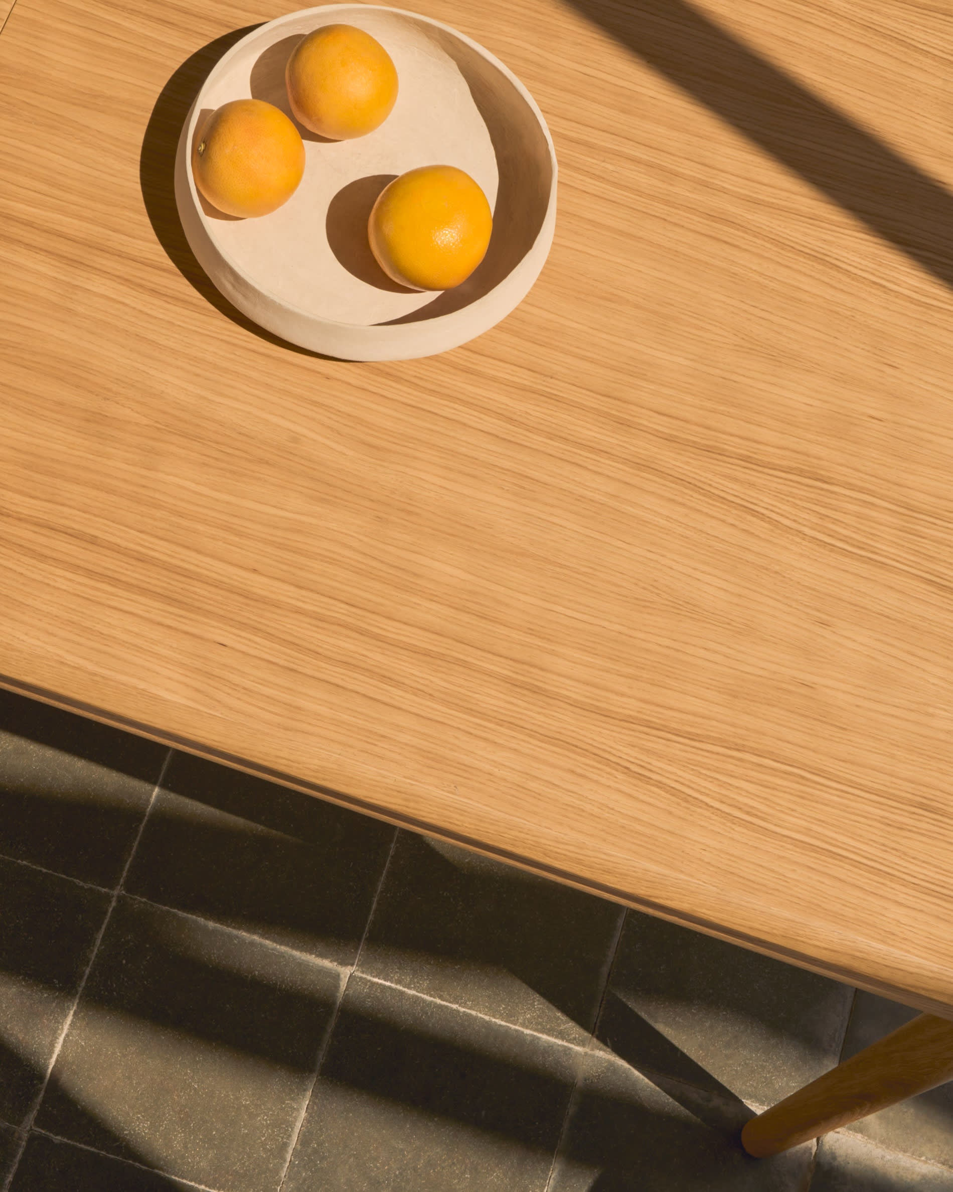 - Tafelblad van fineer en poten van massief eikenhout in een naturel afwerking.