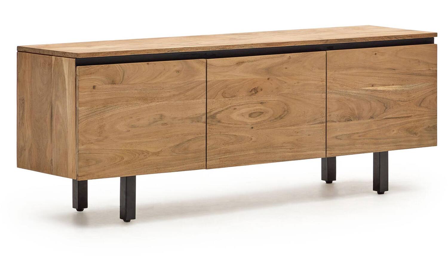 De massief acacia houten Uxue collectie is een design van het Kave Home team, dat opvalt door de zwarte decoratieve lijn die het gehele meubel doorkruist. Elk stuk is one-of-a-kind, dankzij de unieke tinten en nerven van het hout.
