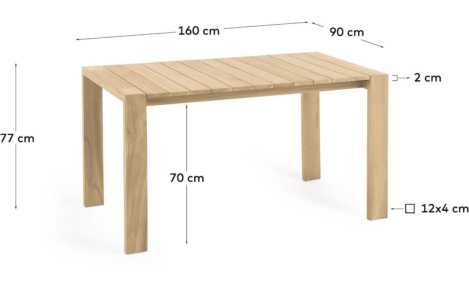 - Tafel gemaakt van massief teakhout.