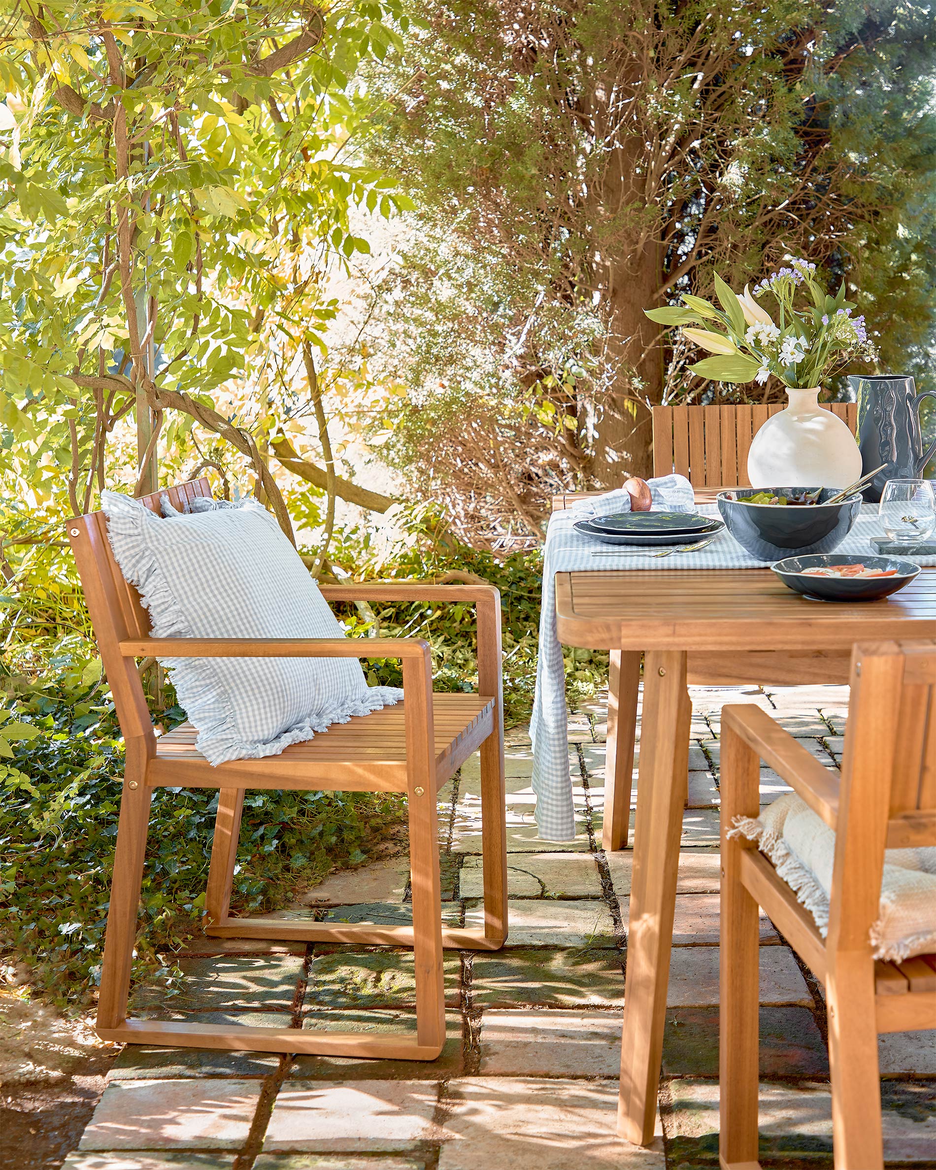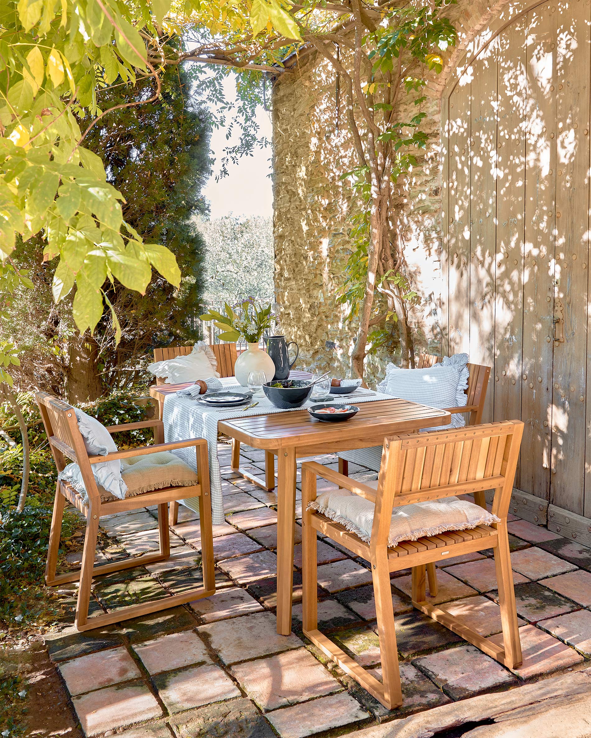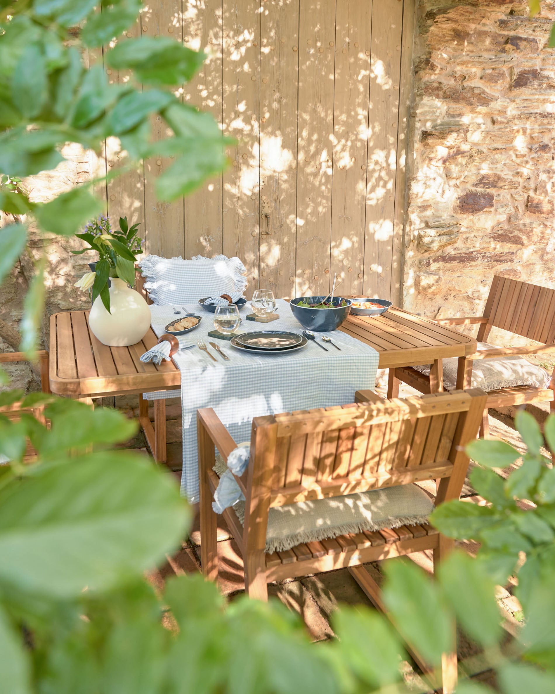 Wat is er beter dan natuurlijke materialen om van je overdekte terras te genieten en in contact te komen met de omgeving? De Vilma collectie is gemaakt van duurzaam massief hout met unieke tinten en nerven in elk stuk.