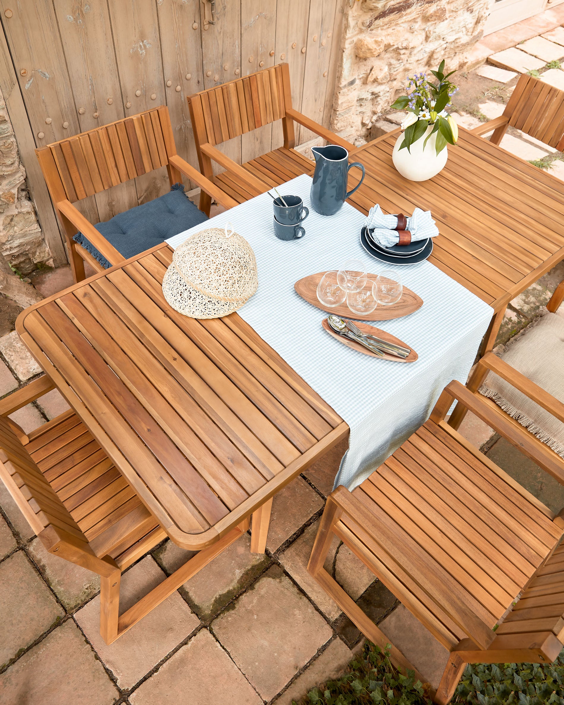 - Massief acaciahout met blanke lak voor duurzaamheid en UV-bestendigheid.