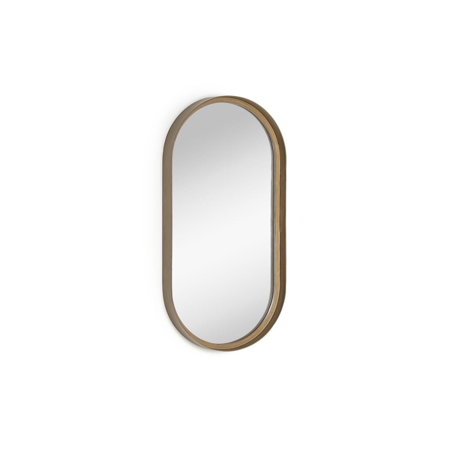 Wij gaan voor ronde vormen! Dankzij de langwerpige vorm van spiegel Tiare kun je je outfit goed bekijken. De goudkleurige stalen lijst geeft een prachtige verouderde look.