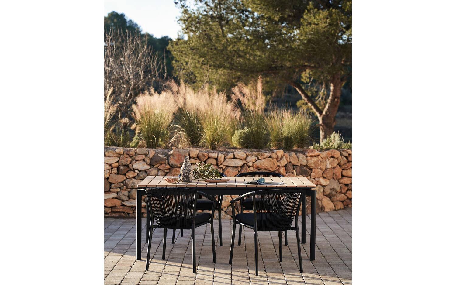 Voor maaltijden thuis of buiten, de Xelida collectie geeft een casual look dankzij de gevlochten touw rugleuning. Ideaal om na het eten te genieten op uw balkon, terras of in de tuin.