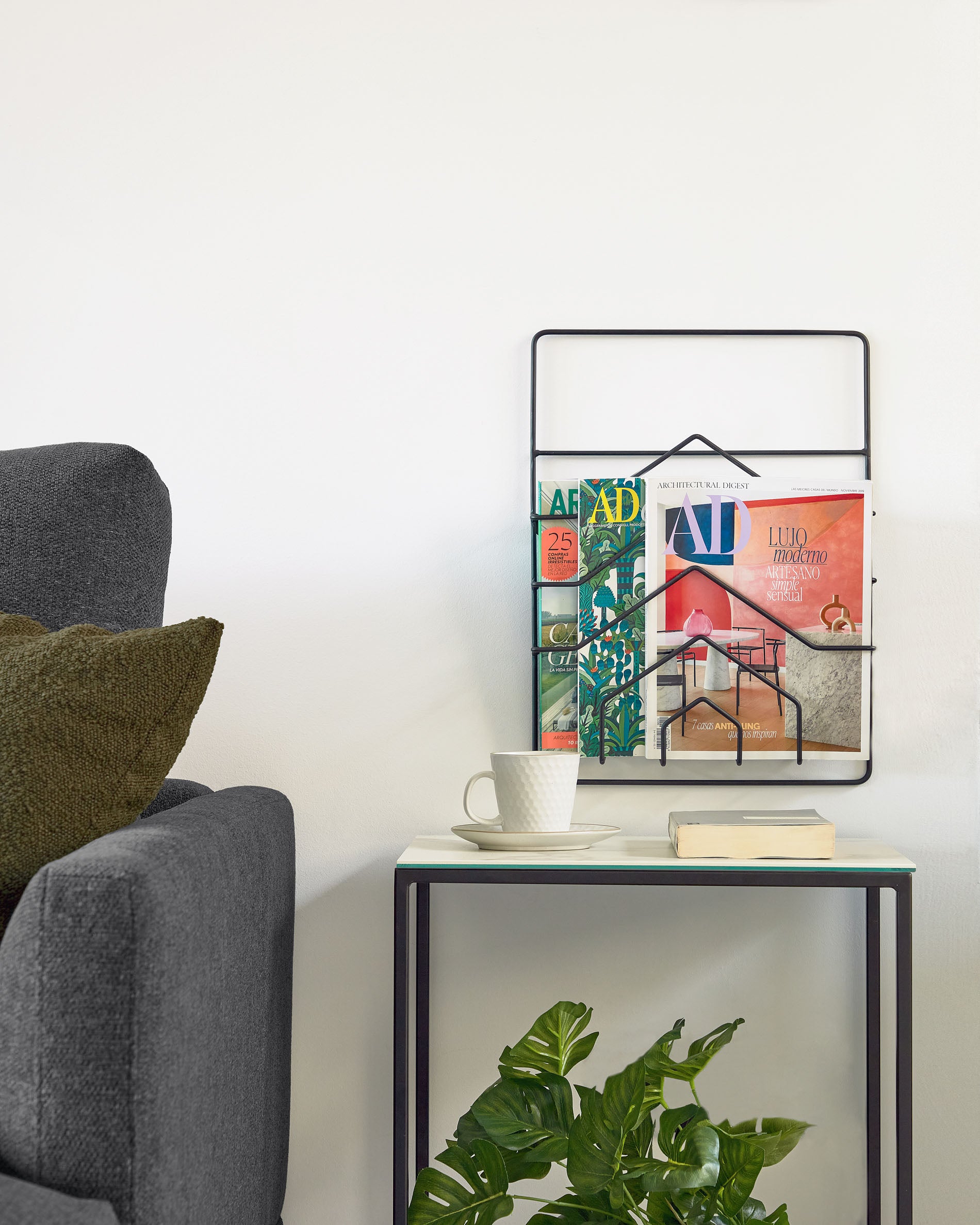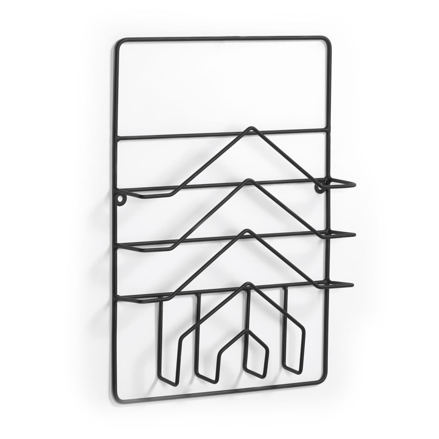 - Stalen tijdschriftenrek voor aan de muur met een zwarte afwerking