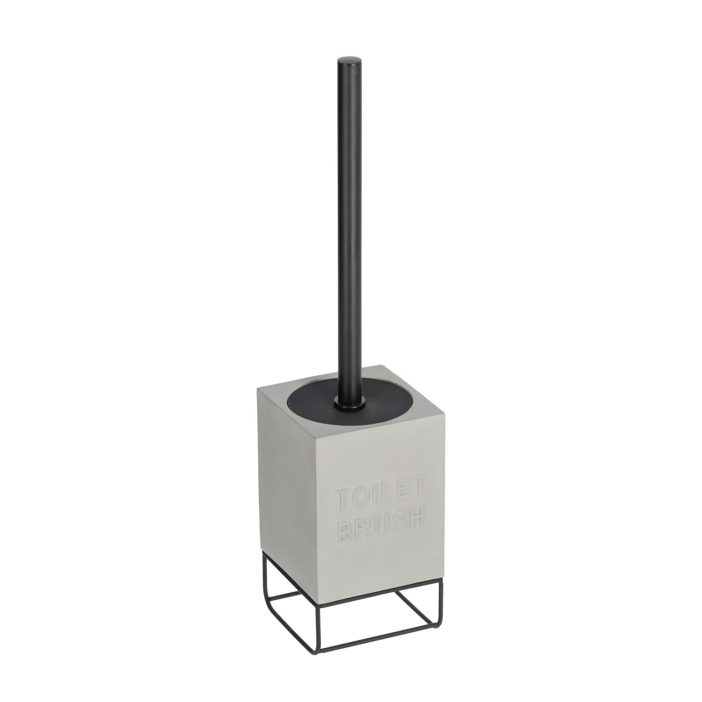 - Toiletborstel van cement en staal met een zwarte afwerking