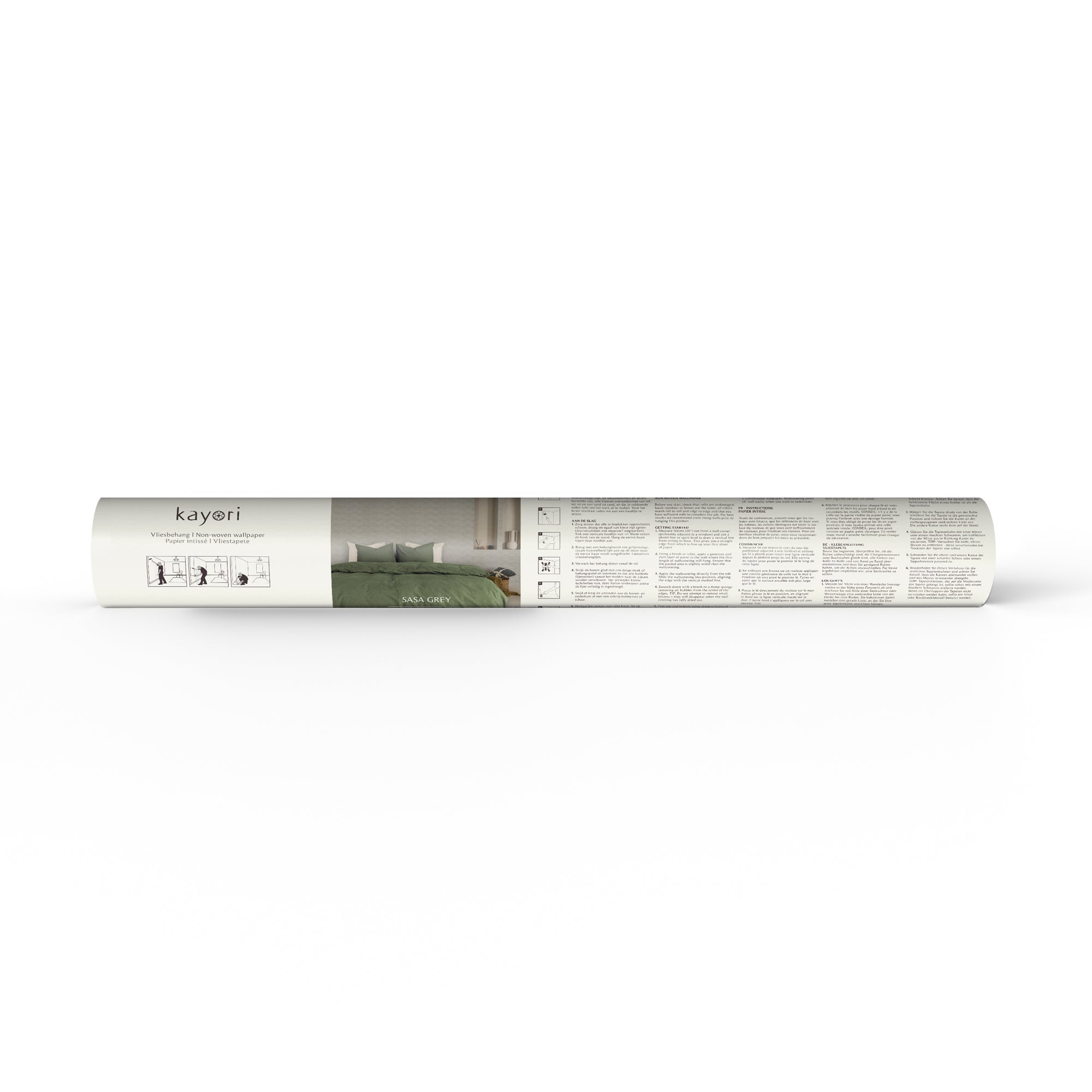 Met behang Sasa maak je van iedere ruimte iets knus! De organische golvende print doet denken aan wolkjes en geeft hierdoor een warme sfeer. De zachte uitstraling van het behang zorgt voor een gezellige sfeer en brengt een vleugje natuurlijke rust in de ruimte. Dit wordt versterkt door het gebruik van grijstinten. Combineer het behang met ons Kayori Kai Groen dekbedovertrek om de sfeer helemaal af te maken.