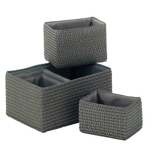 Om de spullen in je badkamer extra makkelijk en netjes te kunnen organiseren en opruimen, is het altijd handig om wat manden in huis te hebben. Op die manier is het een stuk overzichtelijker. Daarnaast gaat het opruimen ook een stuk sneller. Natuurlijk kun je deze mand ook op andere plekken in huis gebruiken zoals bijvoorbeeld in de woonkamer, het kantoor of zelfs de keuken. De Rimossa manden komen in een set van 5 en zijn voorzien van handgrepen en een binnenvoering. De maten zijn: Klein 2 stuks 20 cm x 14 cm x 11 cm, Middel 2 stuks 22 cm x 16 cm x 14 cm, Groot 1 stuk 35 cm x25 cm x 15 cm.