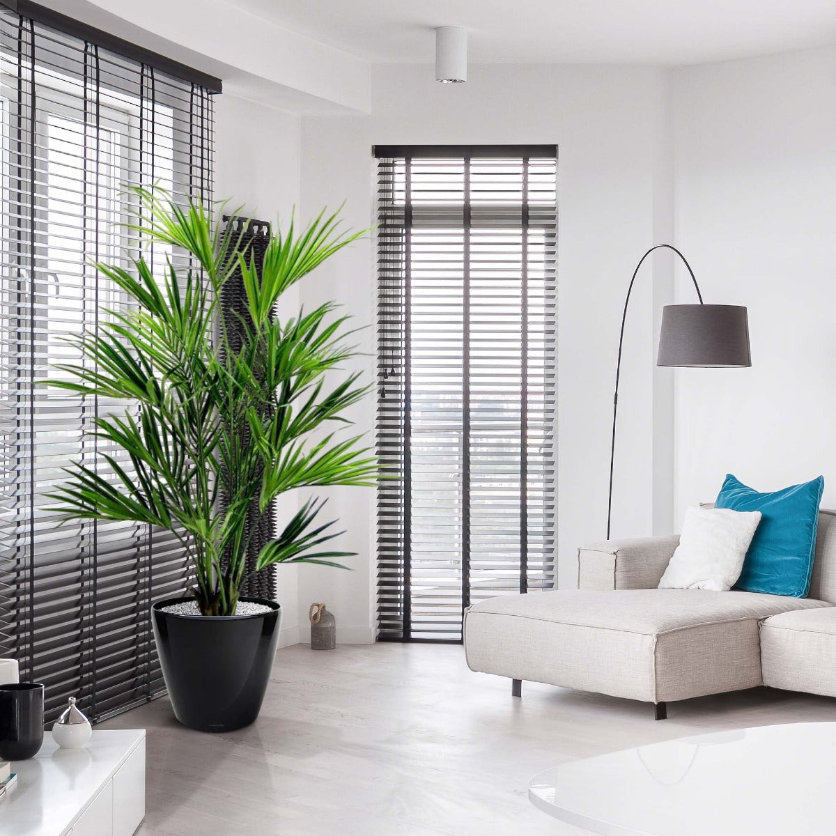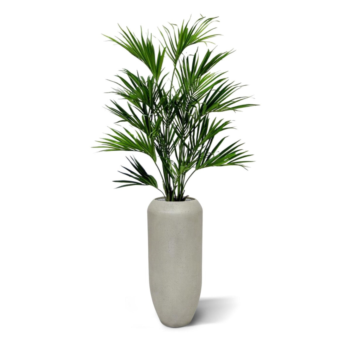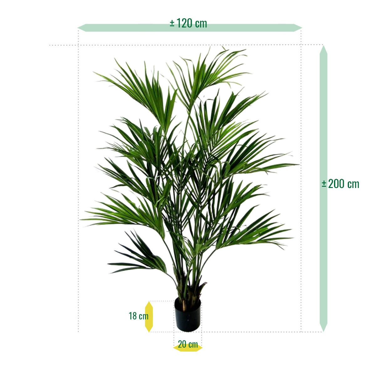 Haal de tropische sfeer in huis met onze vernieuwde Kentia kunstpalm XL - wellicht de meest bekende en geliefde palm. Dit nieuwe model uit de Kentia serie biedt een hoogte van ruim 190 cm en een indrukwekkende diameter van ±100-110 cm. Met zijn