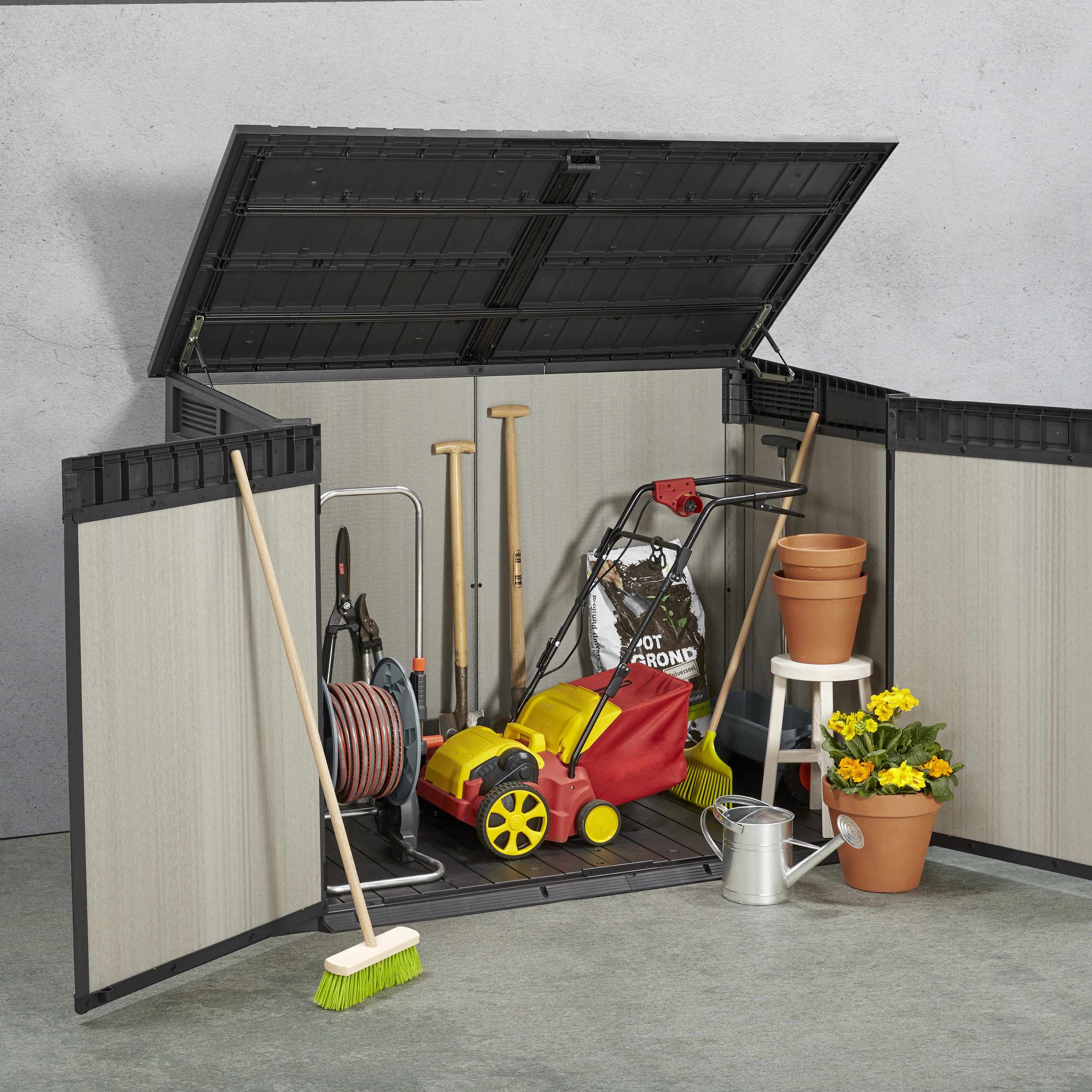 Duo-Tech materiaal Ga voor een natuurlijke uitstraling met de Keter Patio Store. Deze opbergkast is zo ontworpen dat hij toepasbaar is in elke tuin. Toch liever een andere kleur? Geen probleem! Het Duo-Tech materiaal kan eenvoudig over geschilderd worden naar een andere kleur. Zo pas je de store helemaal aan naar jouw smaak en staat hij in elke tuin mooi!