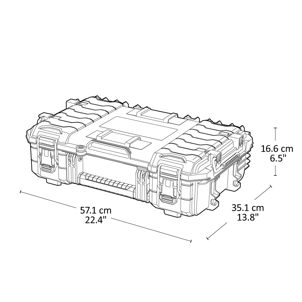 De Pro Gear Power Toolbox is een robuuste gereedschapskoffer, ideaal voor zware werkomstandigheden. Met het meegeleverde Pro Gear Mount bracketsysteem kun je de koffer ophangen en gebruiken. IP65-gecertificeerd, stevige sluit