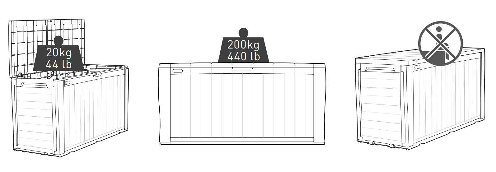 - Deksel is tot 200kg belastbaar (niet aangeraden als zitplaats)