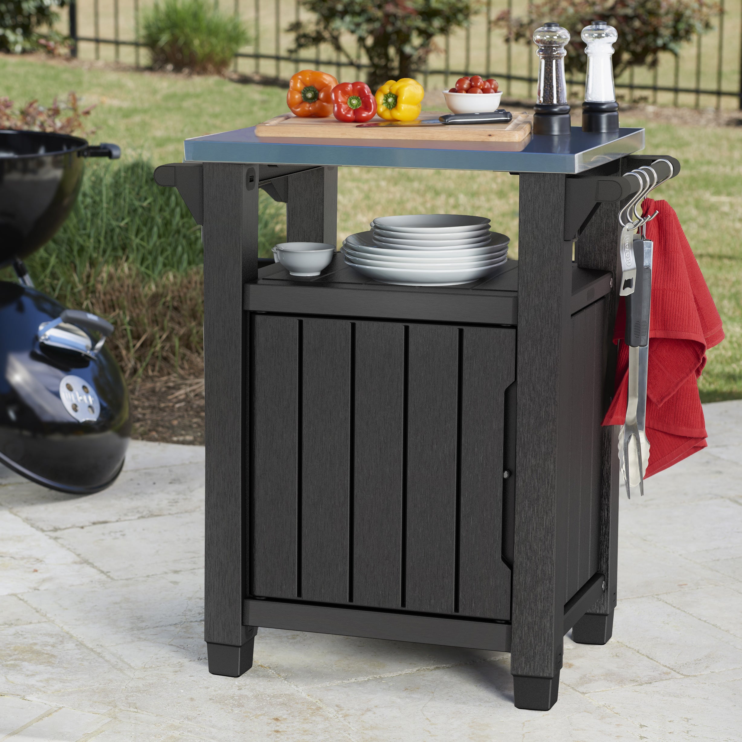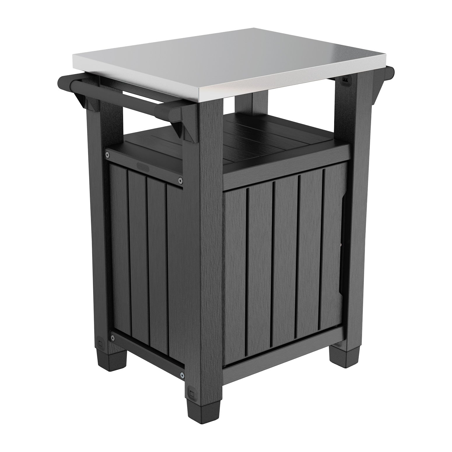 Praktisch en onderhoudsvrij Buiten koken is nog leuker met de Keter BBQ Entertainment Unit. Deze heeft niet alleen veel praktische opbergruimte, maar ook extra werkruimte dankzij het roestvrijstalen blad. De tafel is gemaakt van onderhoudsvrij kunststof en duurzaam metaal en kan daardoor gewoon het hele jaar buiten blijven staan. Maak je buitenkeuken helemaal compleet met de BBQ Entertainment Unit van Keter!