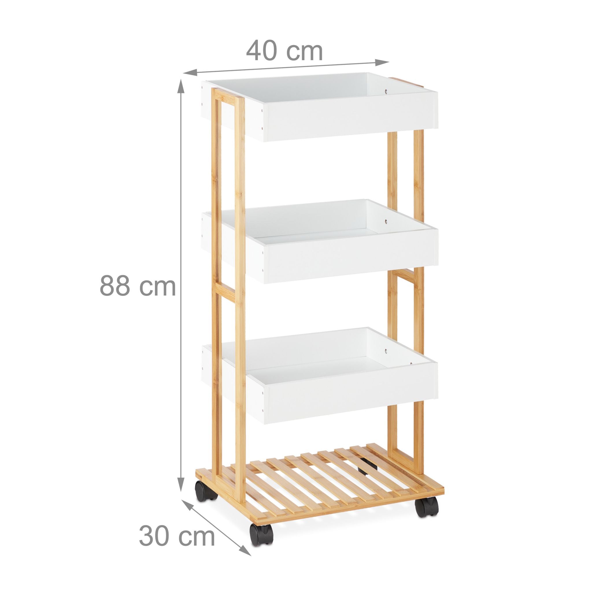 Deze mooie trolley op wieltjes kun je zowel een plekje geven in de badkamer als in je keuken. Hij biedt je met zijn vier niveaus alle ruimte die je nodig hebt om je keuken- of badkamer spullen op te bergen.