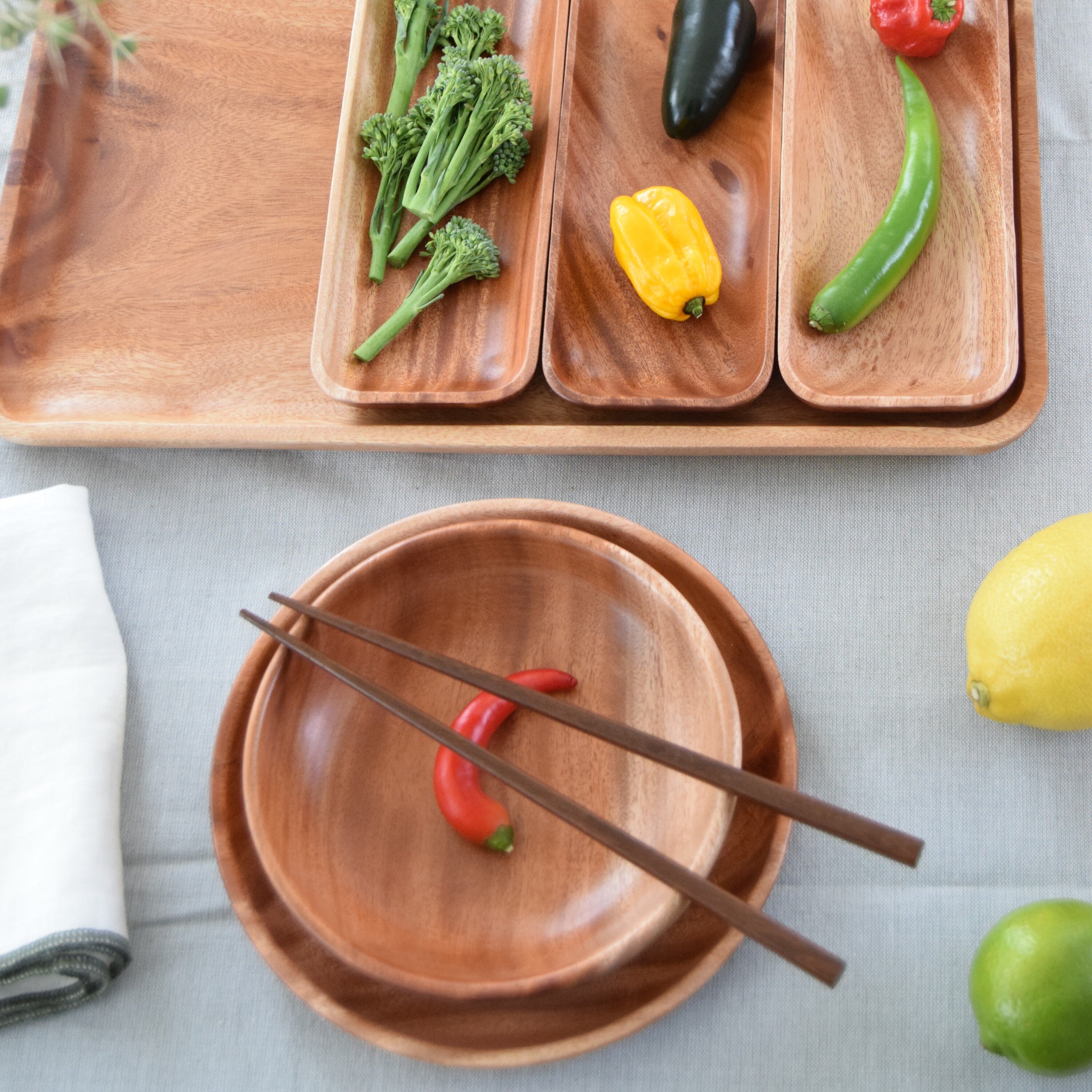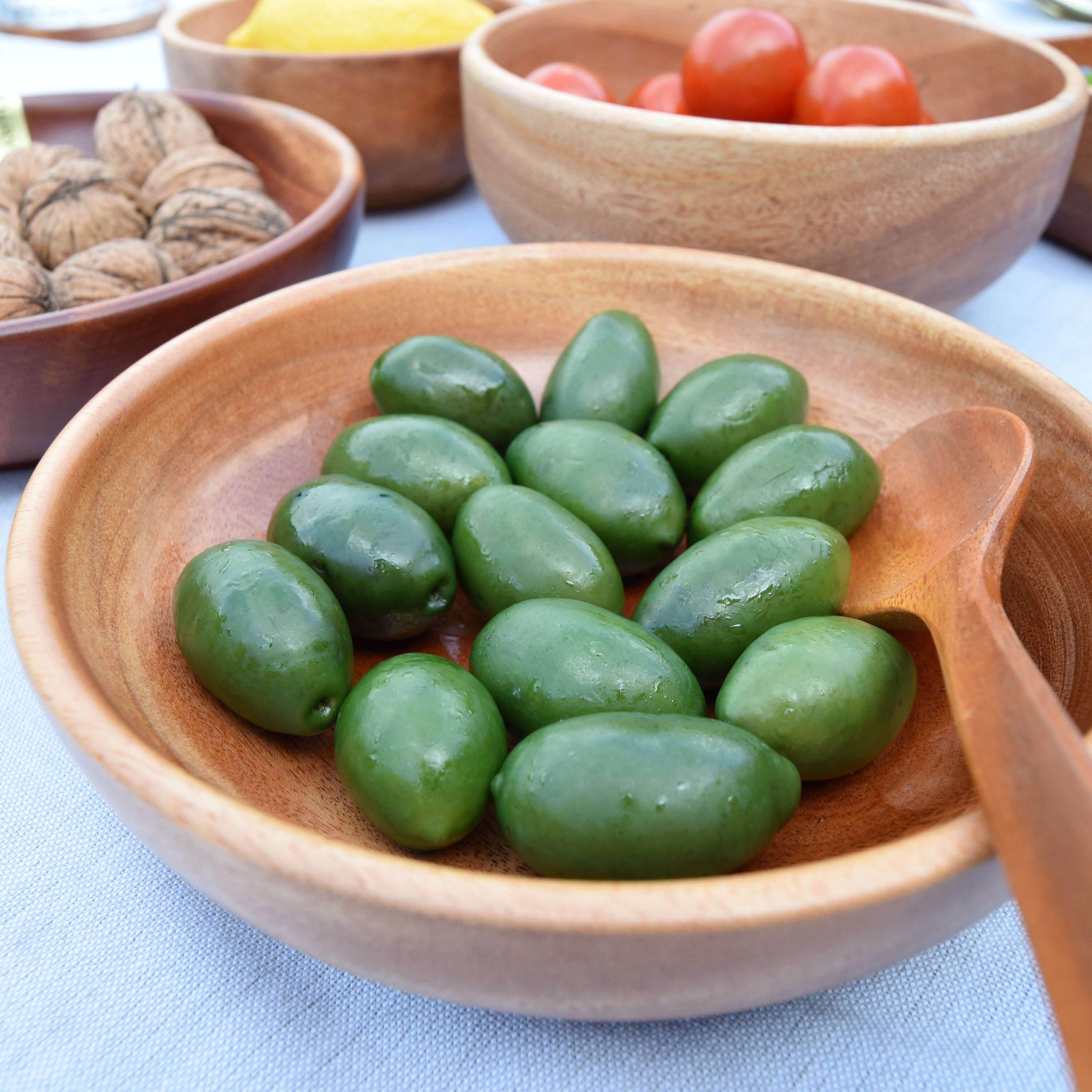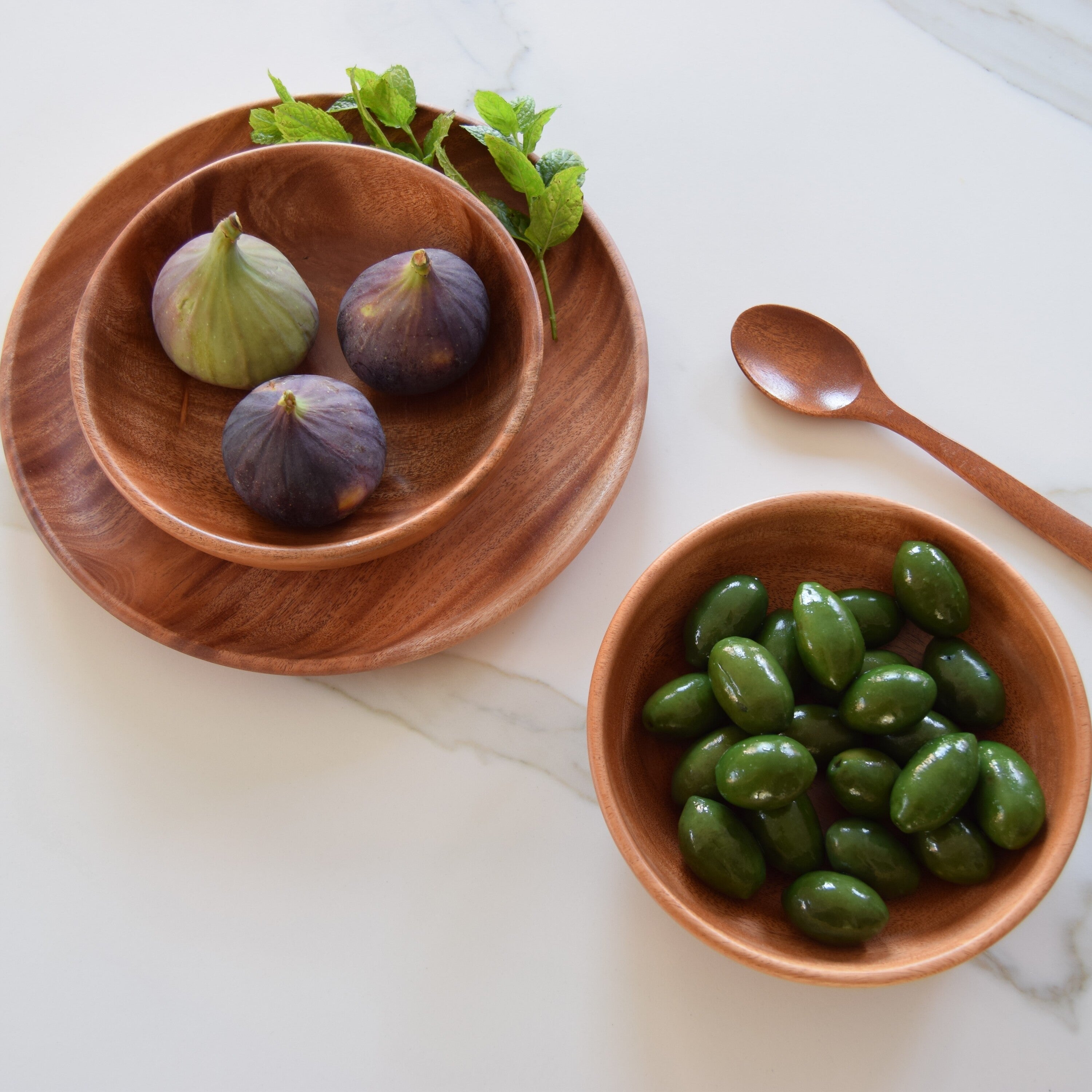 Deze platte kommetjes zijn verschillend qua uitstraling, vanwege de natuurlijke variaties in het hout. Kleine knoesten en prachtige nerfpatronen zijn overal zichtbaar. Deze unieke tapasschaaltjes zijn met een natuurlijke olie bewerkt; het water loopt er zo vanaf, dus vet of azijn trekt niet in het hout. Zet een paar houten kommetjes van diverse formaten op tafel met hummus, baba ghanoush en rauwkost dat ziet er super trendy uit, en lekker dippen is nog nooit zo leuk geweest! Een geweldig en origineel om cadeau te geven of om jezelf te verwennen. Functioneel, stijlvol en duurzaam