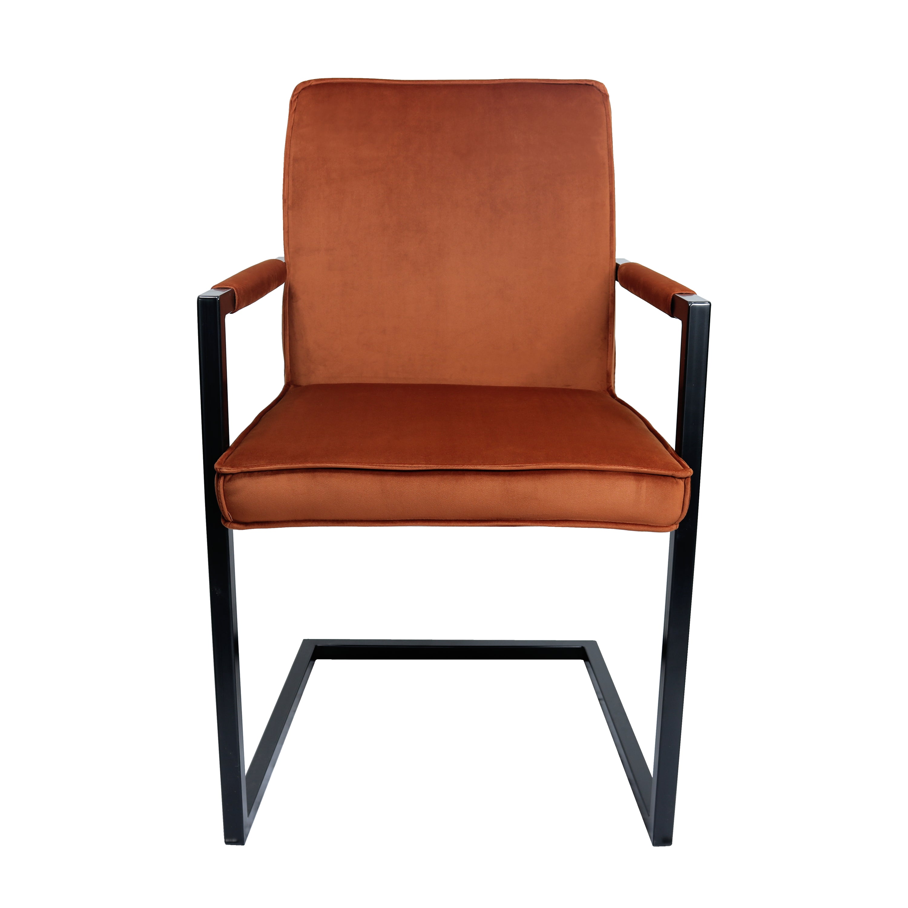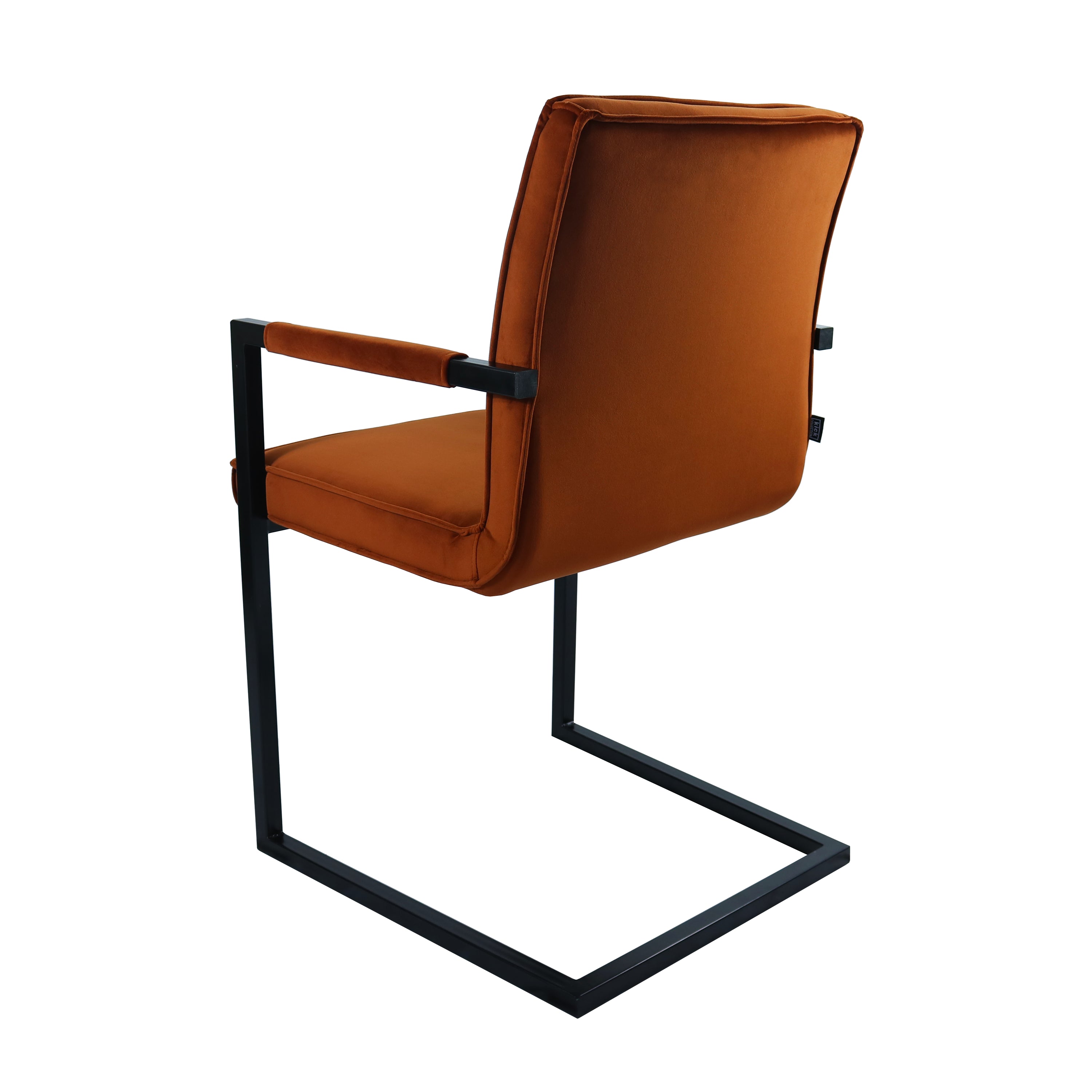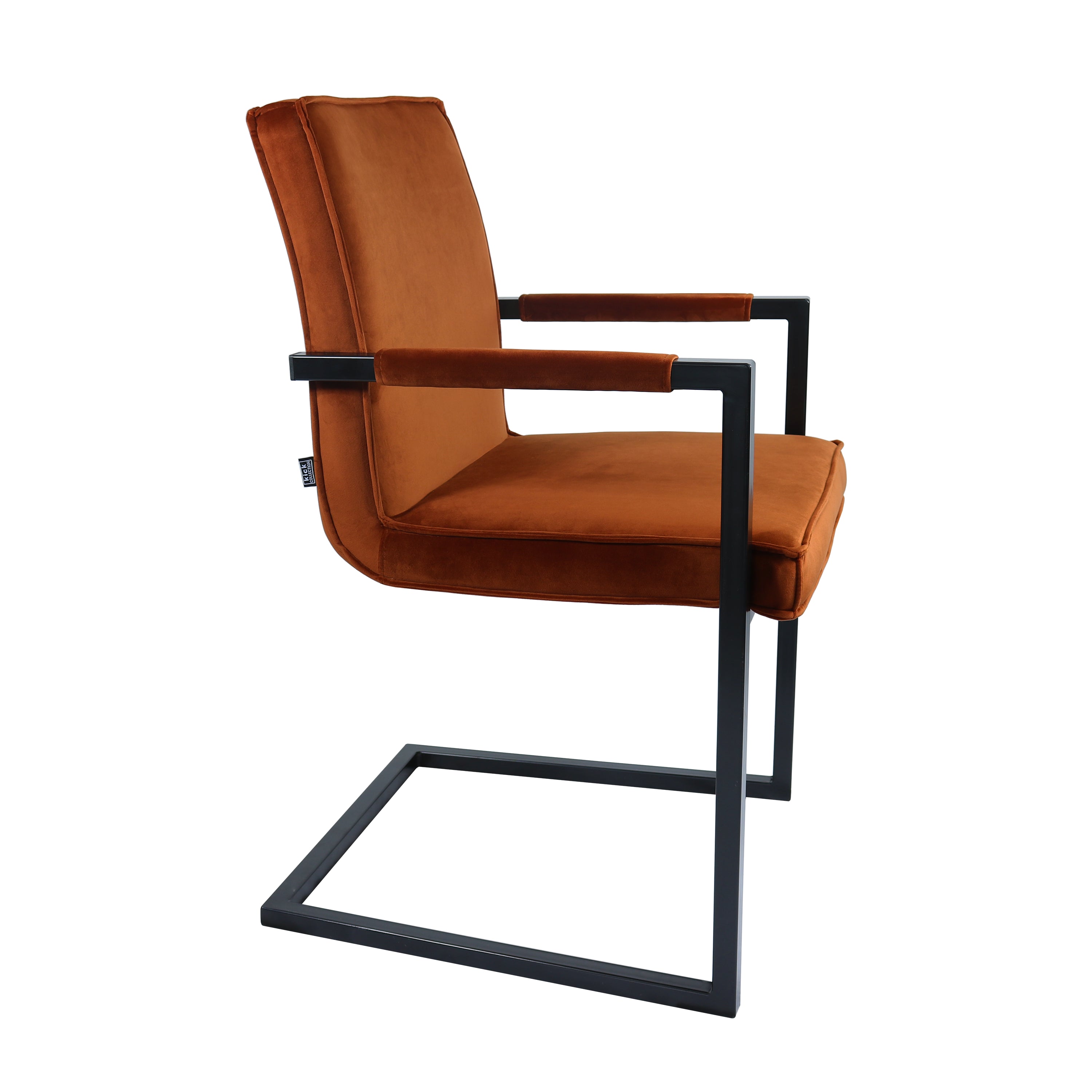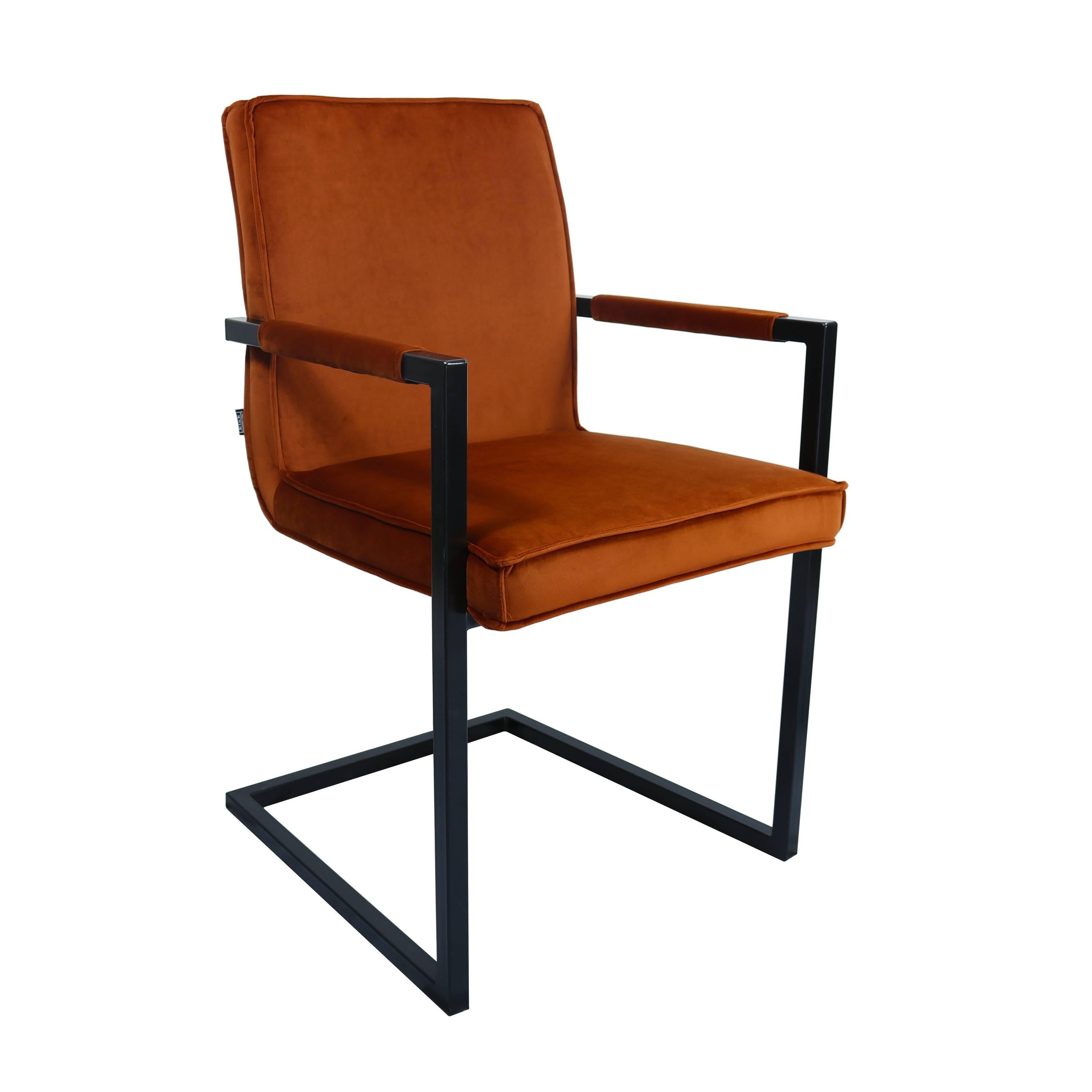 Kick Velvet eetkamerstoel Jim - Oranje De stoerste stoel van dit moment van Kick! De stoel met armleuning kenmerkt zich door een sterk stalen frame en is bekleed met een sterke Kick velvet stof. Verkrijgbaar in verschillende kleuren. Mix and Match!