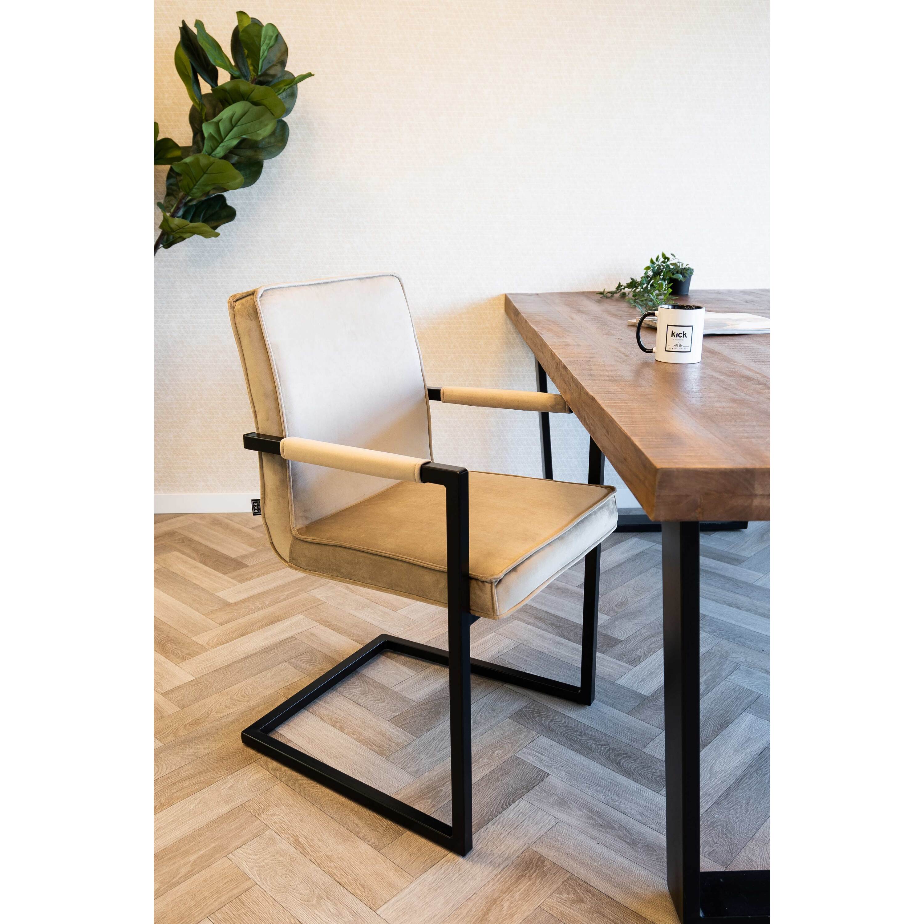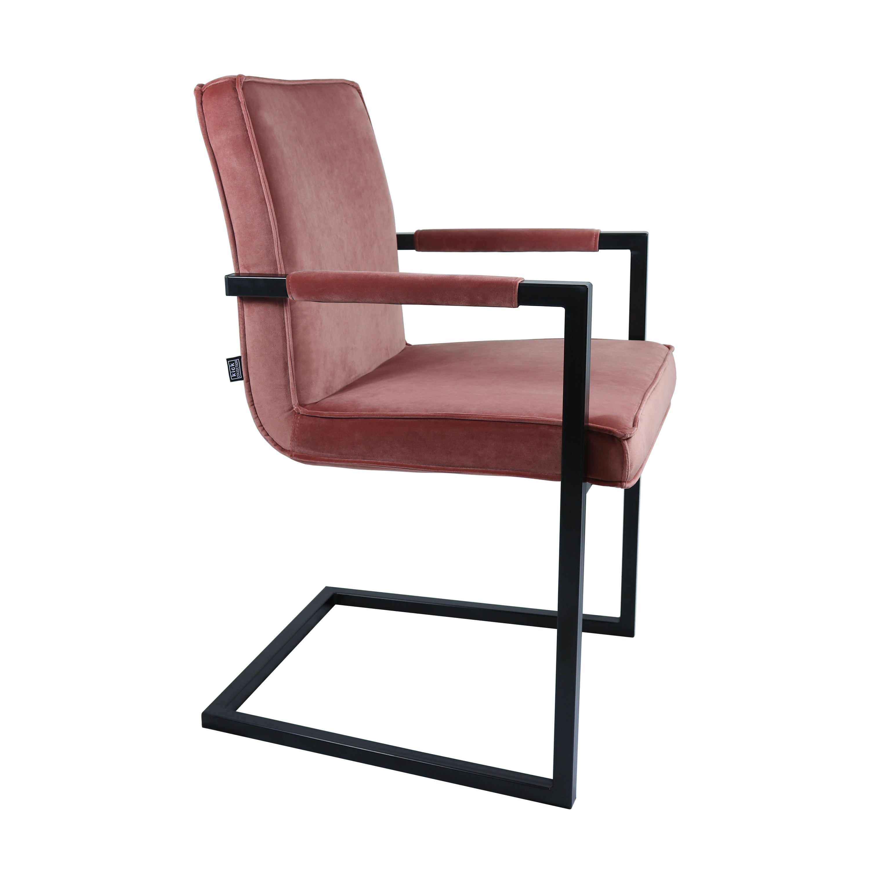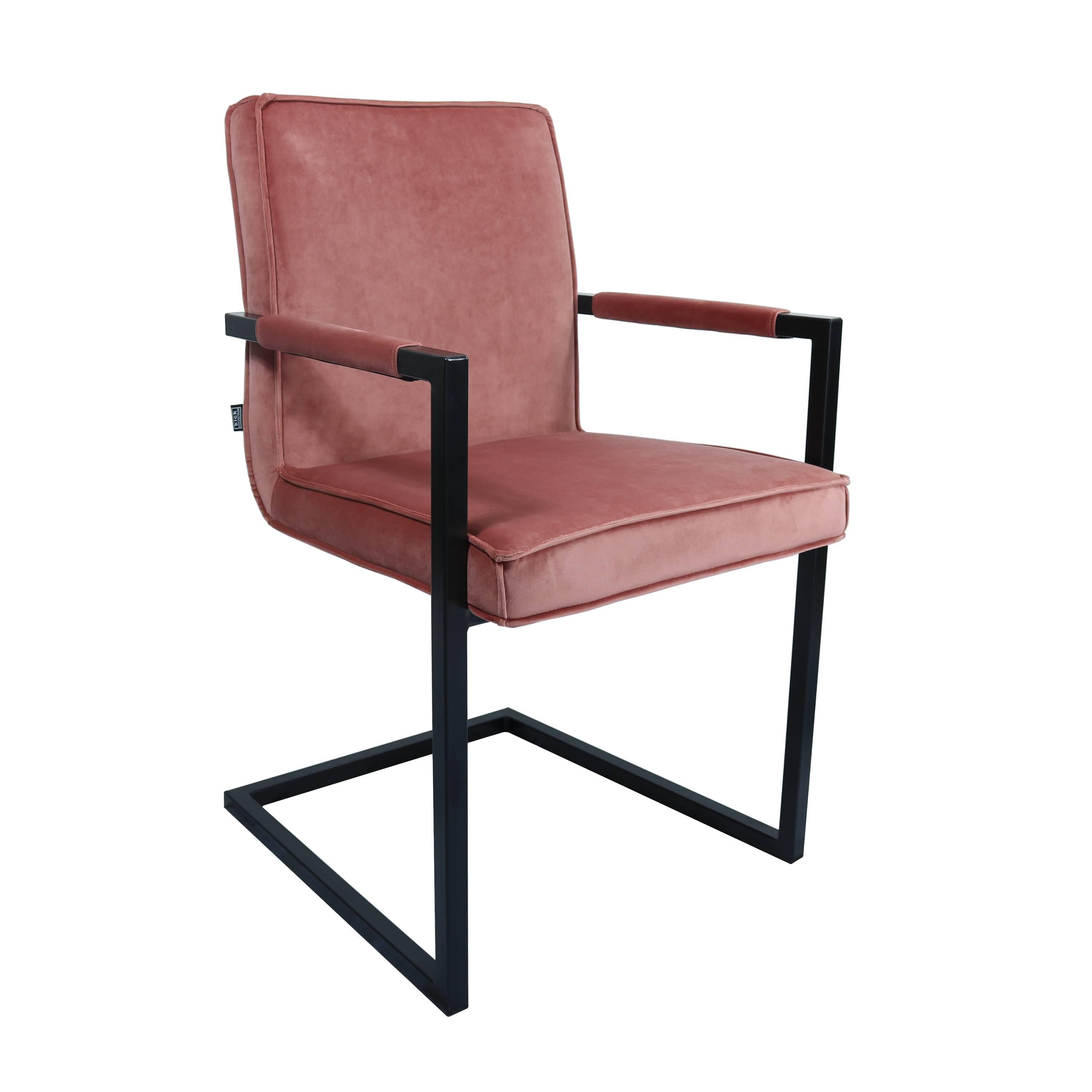 Kick eetkamerstoel Jim - Velvet Roze. De stoerste stoel van dit moment van Kick! De stoel met armleuning kenmerkt zich door een sterk stalen frame en is bekleed met een sterke Kick velvet stof. Verkrijgbaar in verschillende kleuren. Mix and Match!