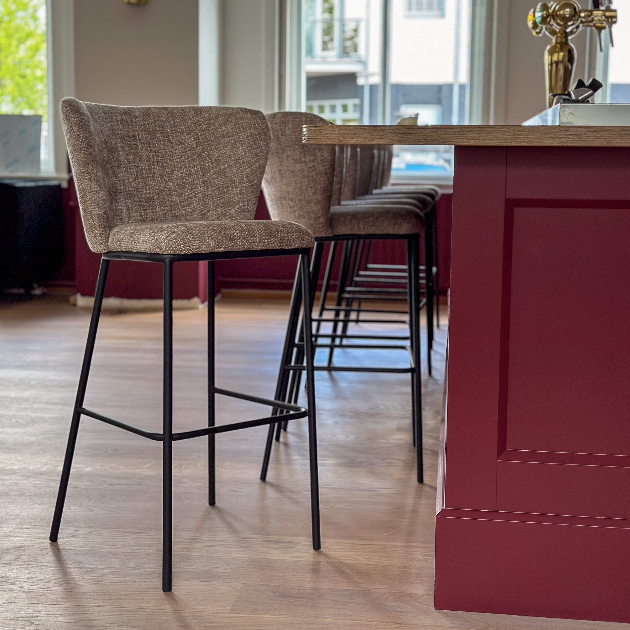 Barkruk Bo is een eigentijdse en comfortabele keuze voor elke bar of keukeneiland. Gestoffeerd met een zachte chenille stof biedt deze kruk niet alleen een zachte zitervaring maar voegt hij ook een vleugje elegantie toe aan de ruimte.