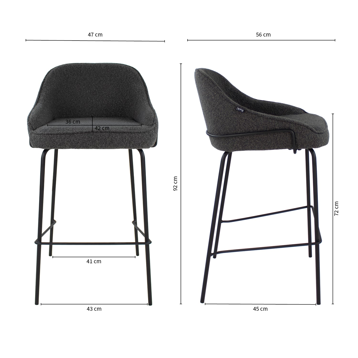 Kick barkruk Sepp - Bouclé - Donkergrijs