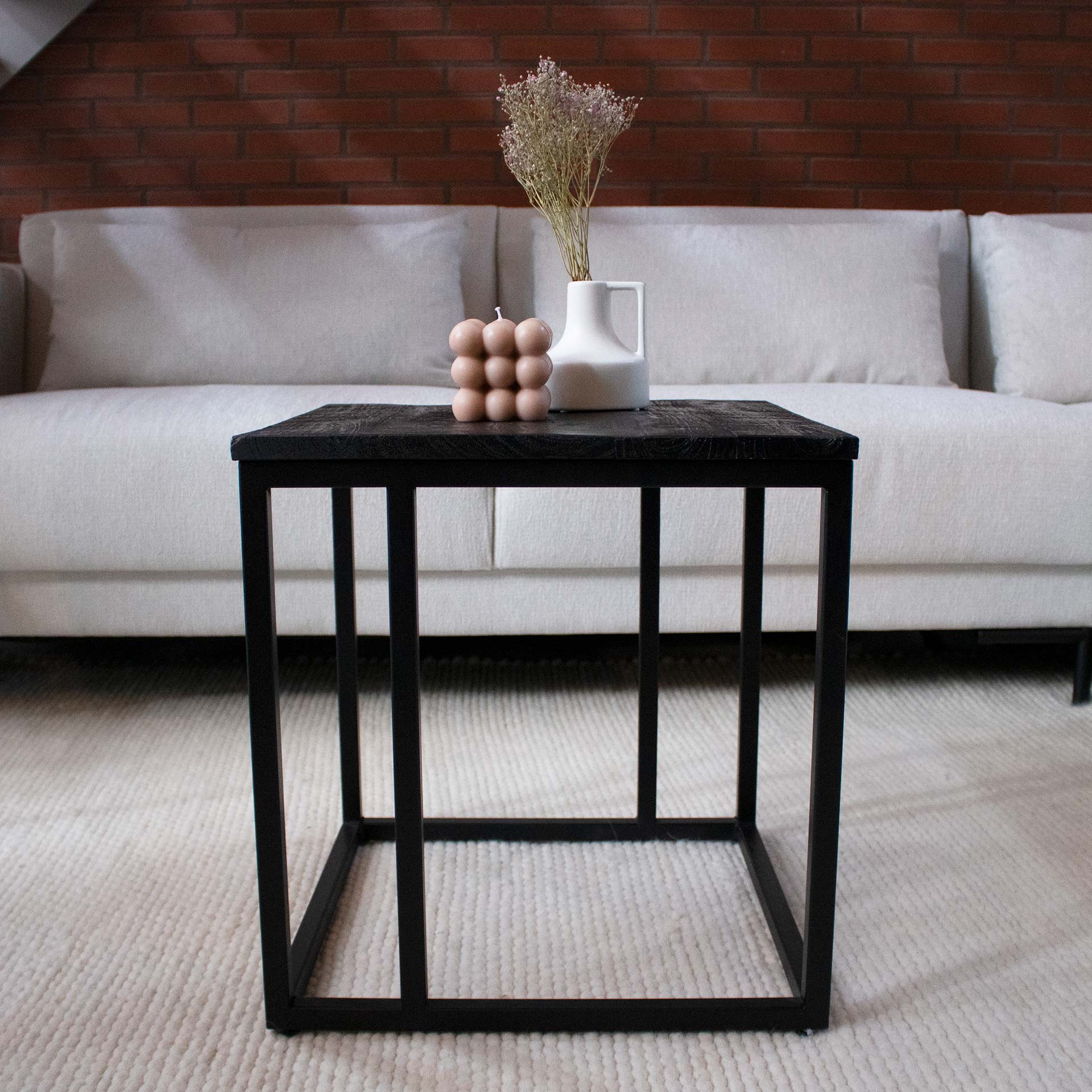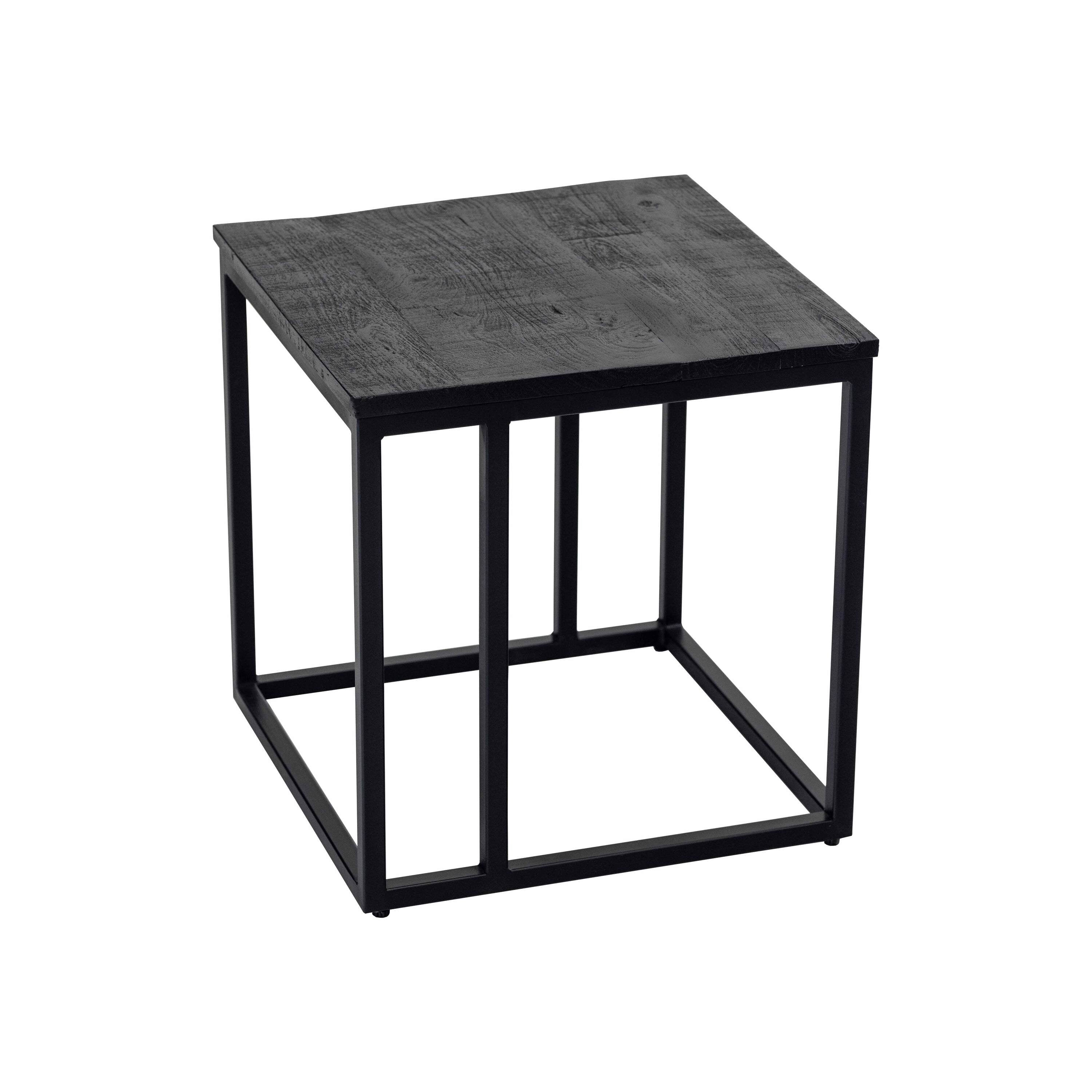 Kick Bijzettafel Anna 45x45 HI ANNA! Bijzettafel ANNA heeft een zwart metalen frame met een blad van stoer mango hout. Hierdoor heeft hij een industrieel uiterlijk maar ook in een strakker interieur komt hij prima toch zijn recht.