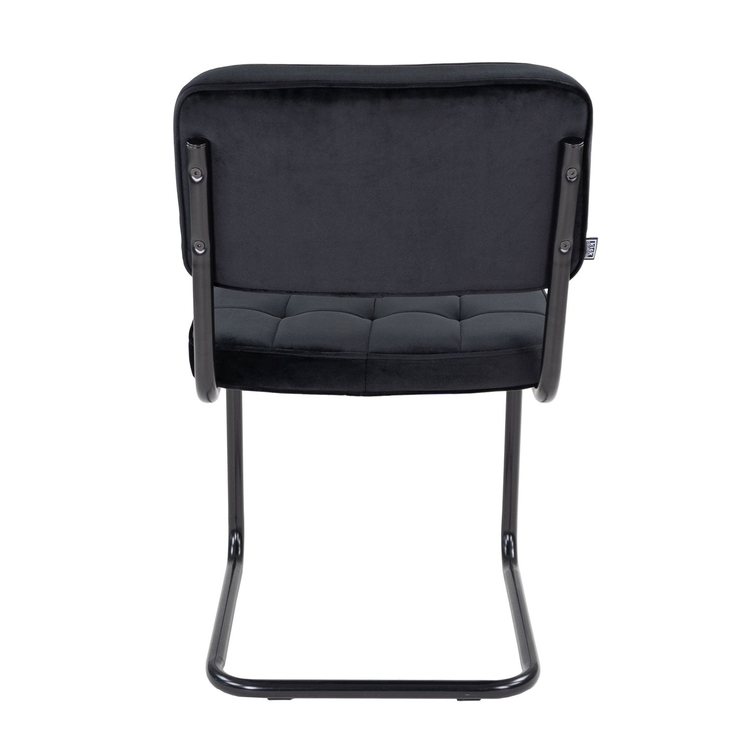 Het zwart metalen sledeframe van IVY is gecombineerd met comfortabele zittingen die zijn bekleed met een zwarte velours stof. This is it!