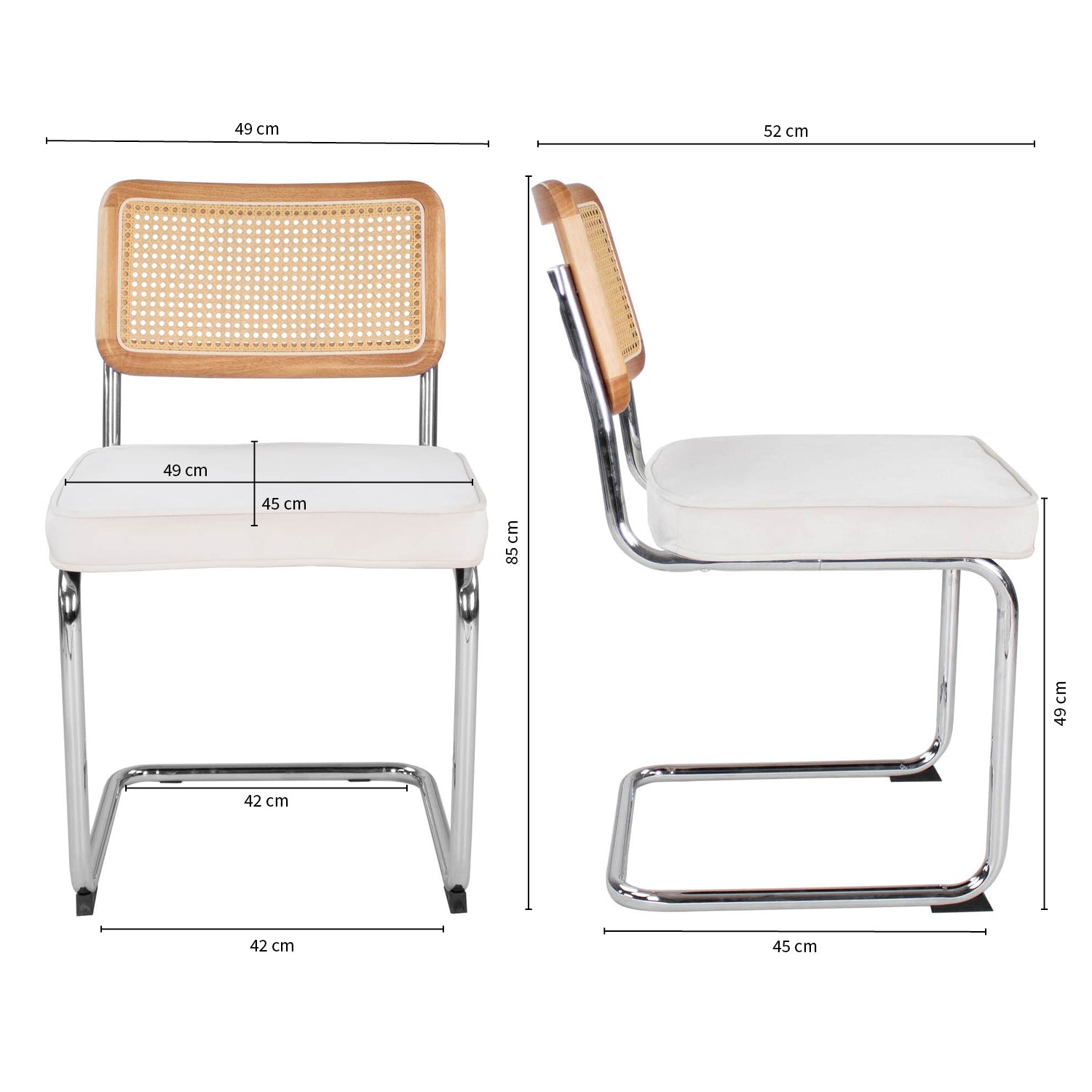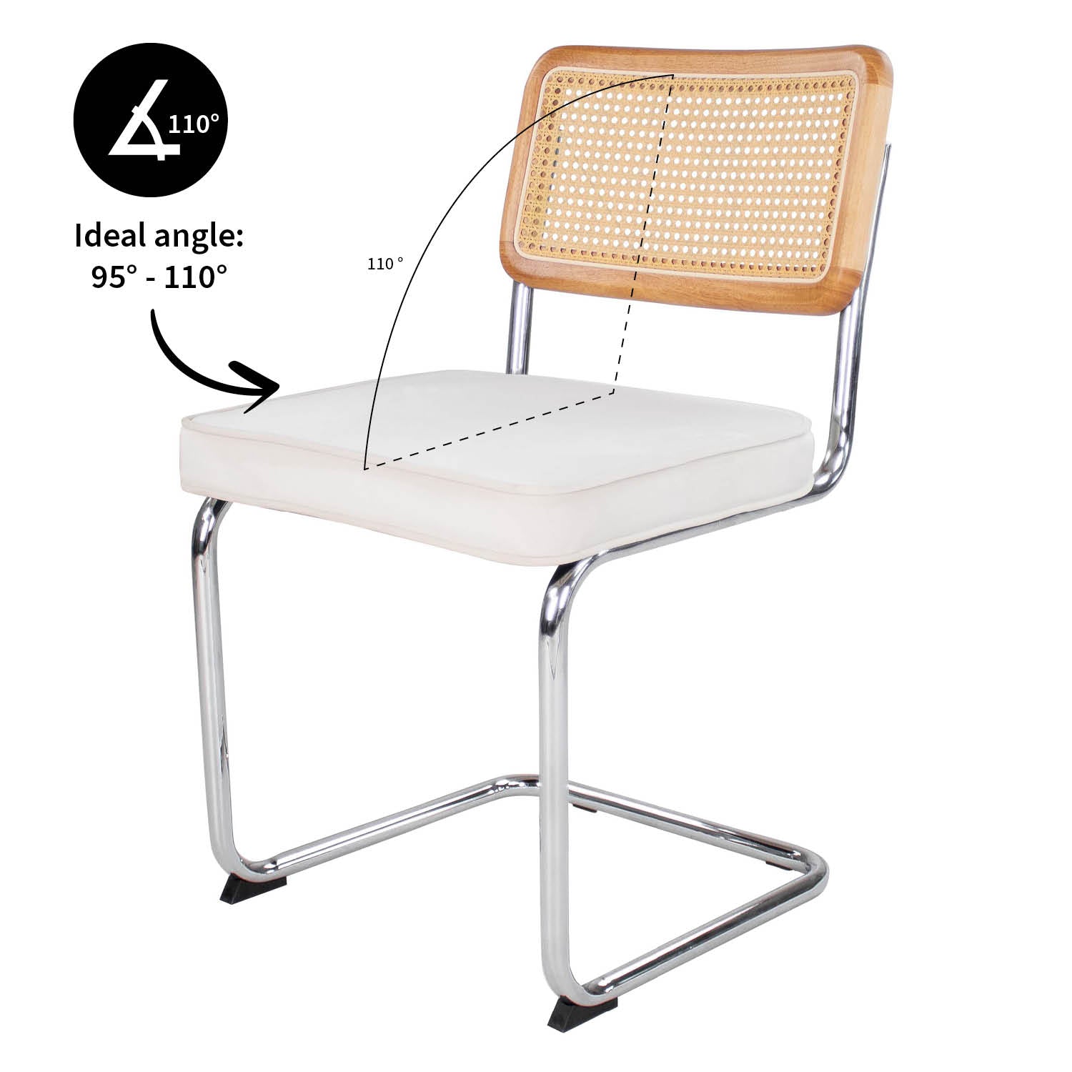 De hoogte van de zitting, gemeten vanaf de vloer. De ideale zithoogte bevindt zich tussen de 40 en 46 cm. Je zit het lekkerst met een ruimte van ongeveer 20 cm, tussen de stoelzitting en de onderkant van het tafelblad.
