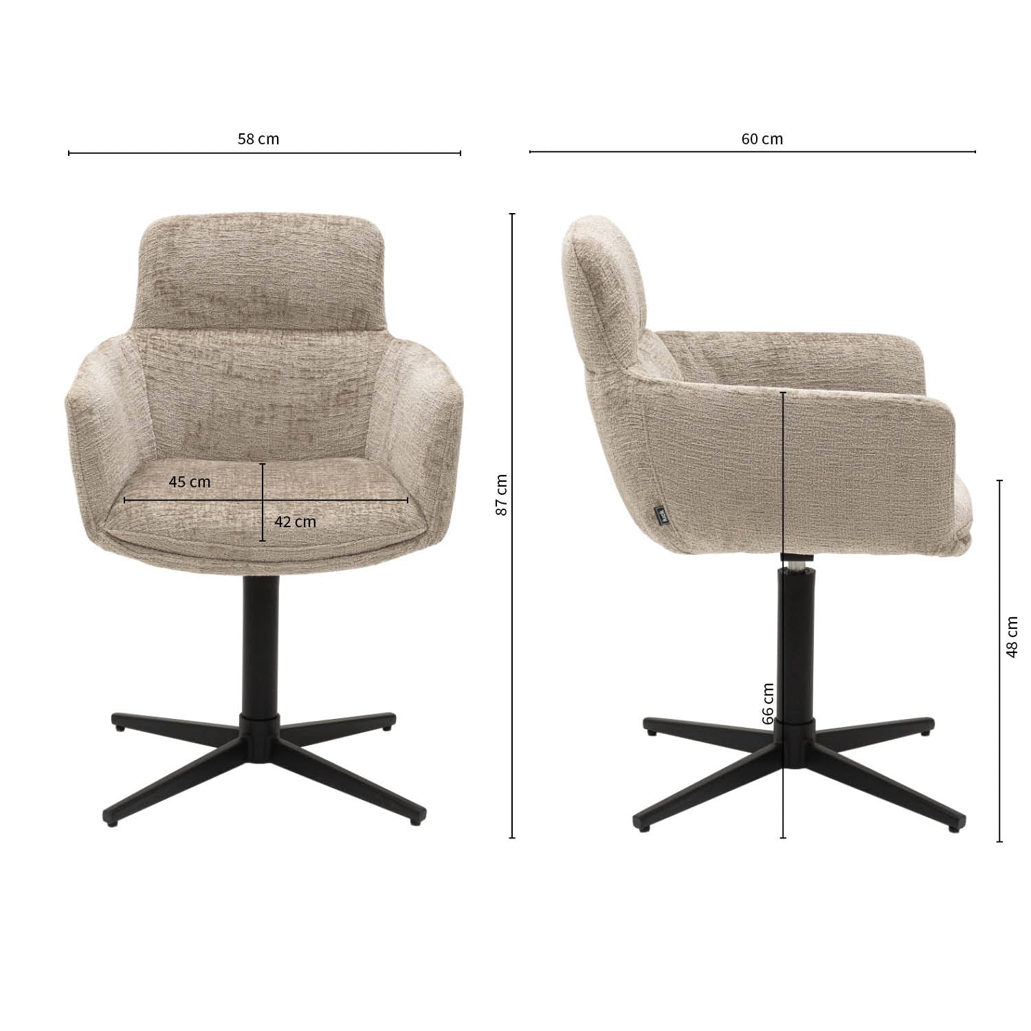 Deze stijlvolle topper is bekleed met een zachte, fijngeweven textuurstof die niet alleen luxe oogt, maar ook heerlijk aanvoelt. Met zijn volle zitvulling, comfortabele rugleuning en ondersteunende armleuningen zit je altijd goed, of je nu lang aan tafel zit of lekker achteroverleunt.