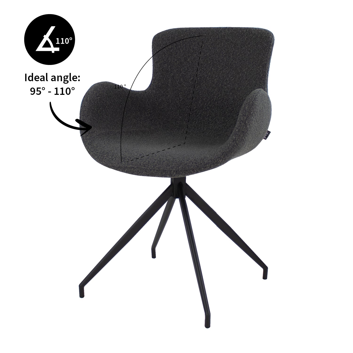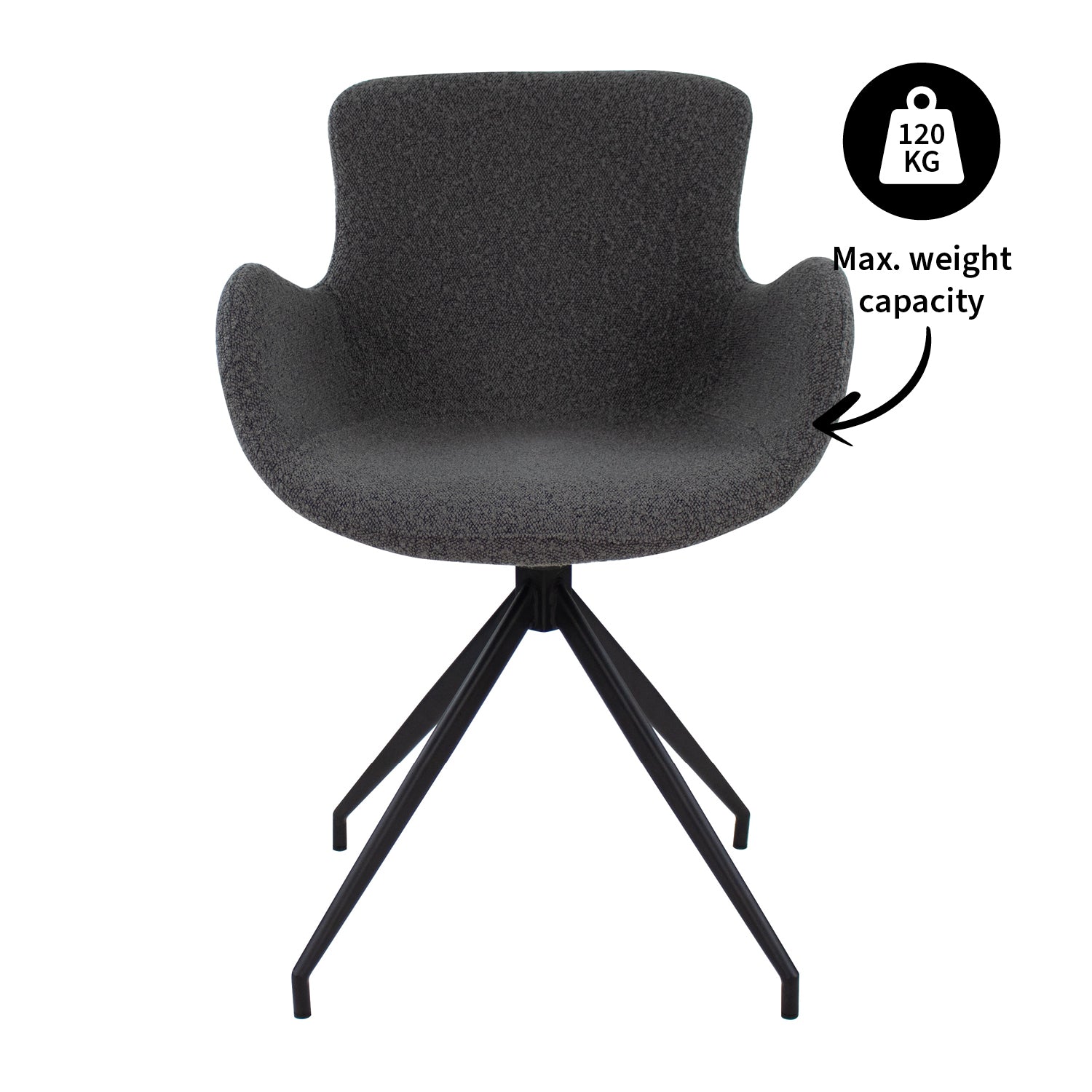Kick draaistoel Novi - Bouclé - Donkergrijs