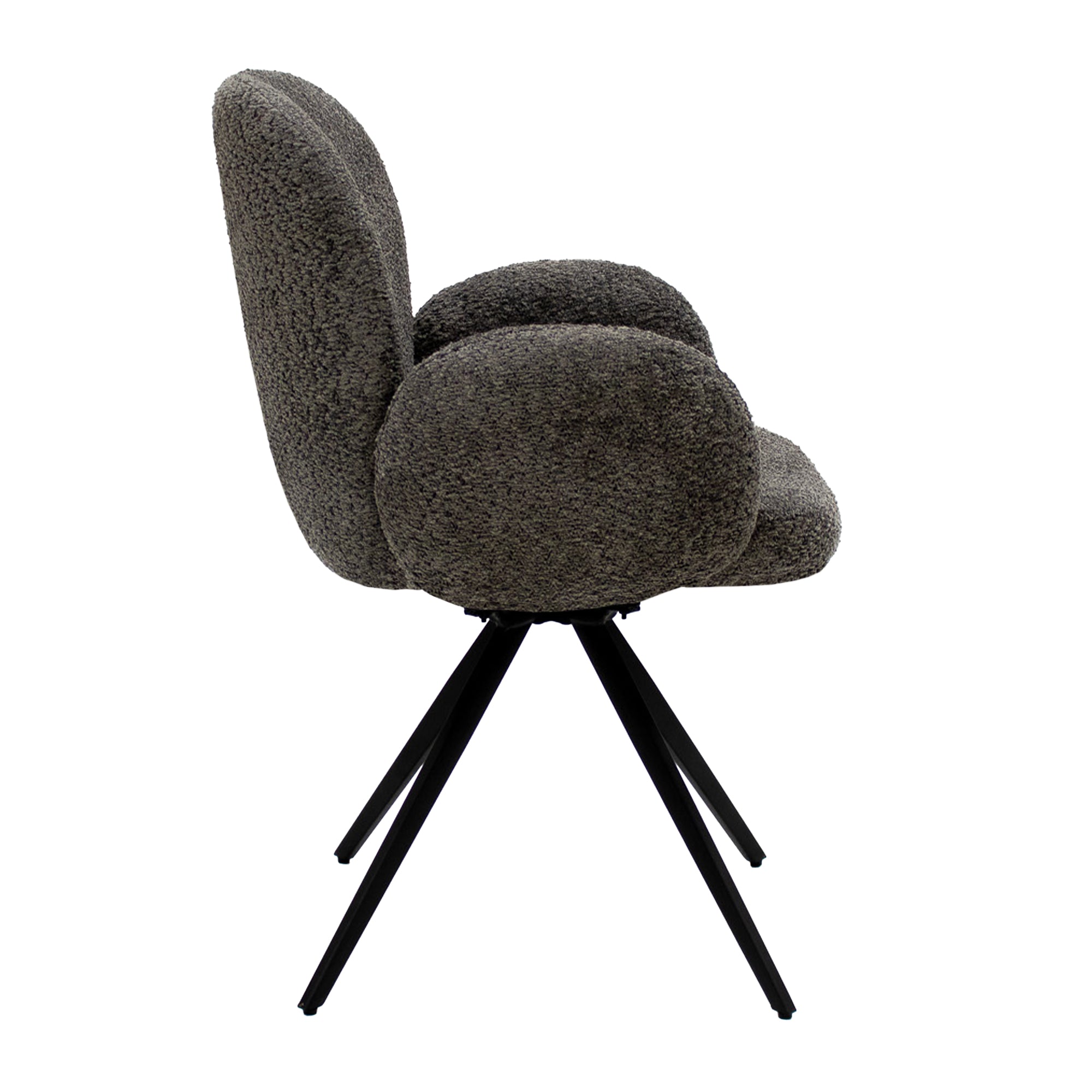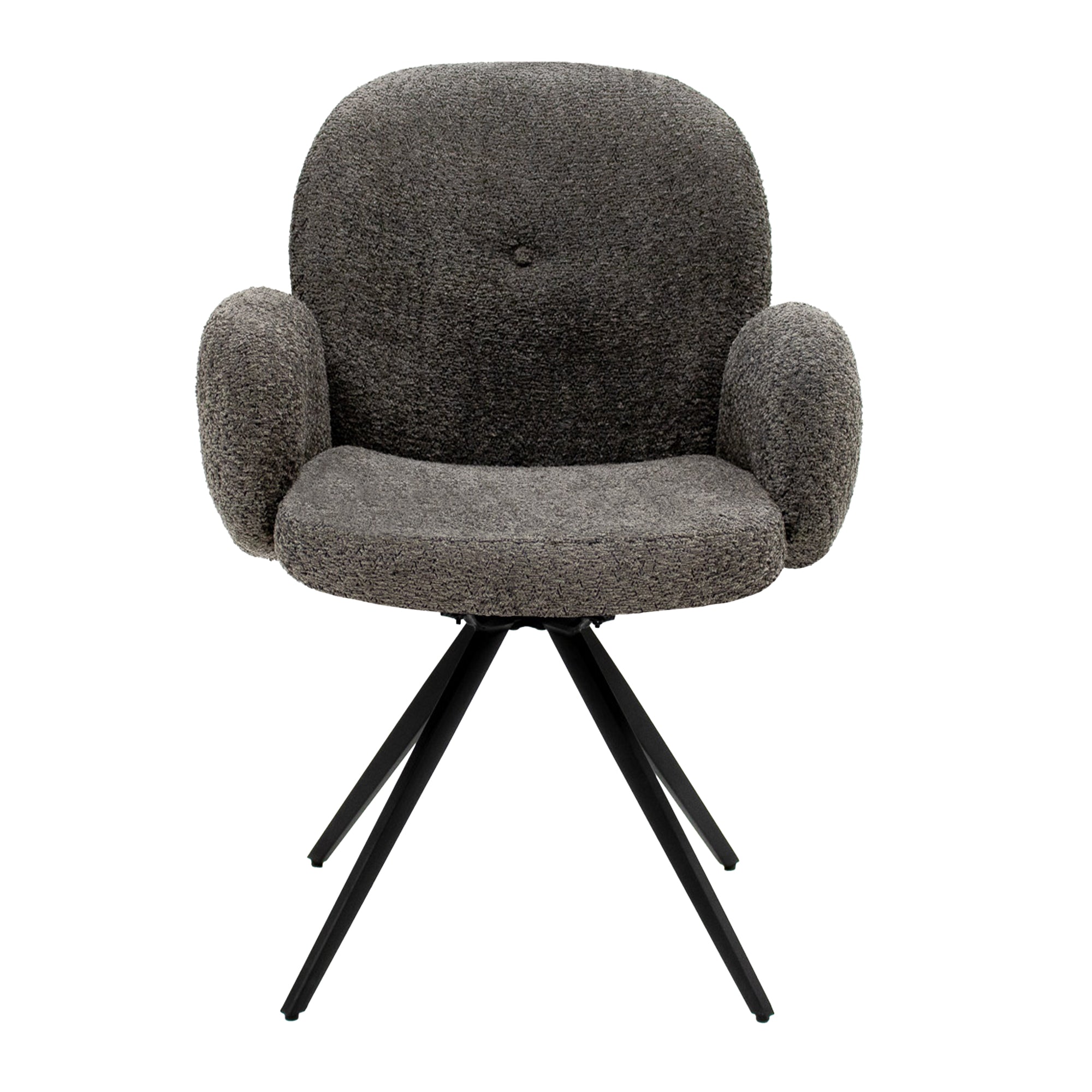 Ontmoet draaistoel Raf! Deze eetkamerstoel straalt comfort en klasse uit. Wat Raf uniek maakt? De afgeronde armleuningen, het speelse knoopje in de rugleuning en het stevige, 180 graden draaibare frame.