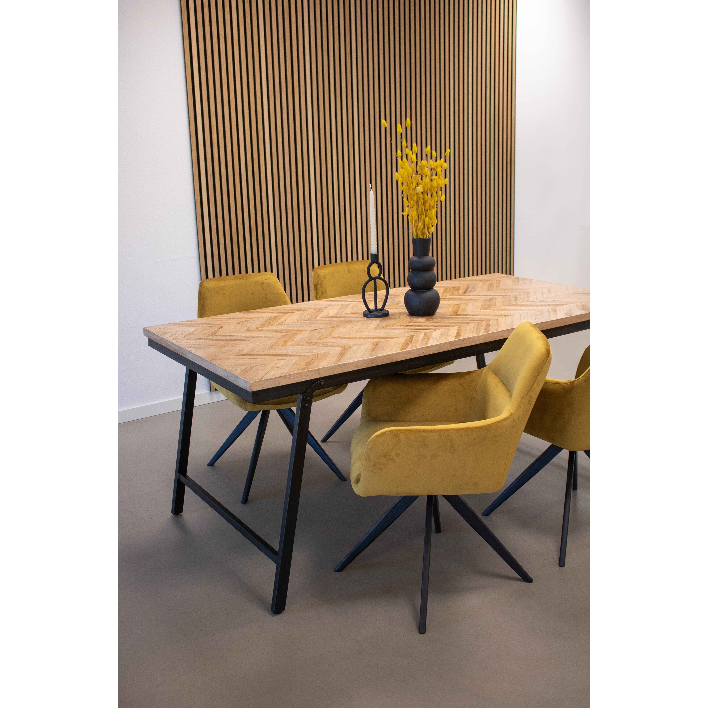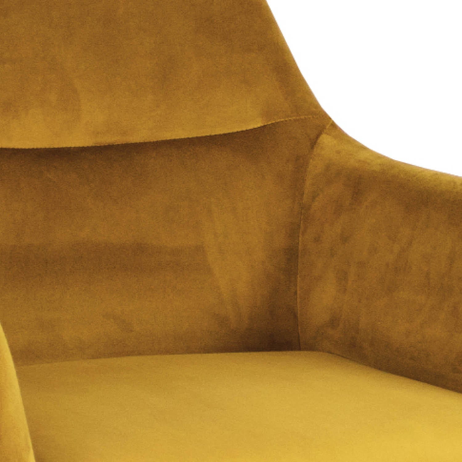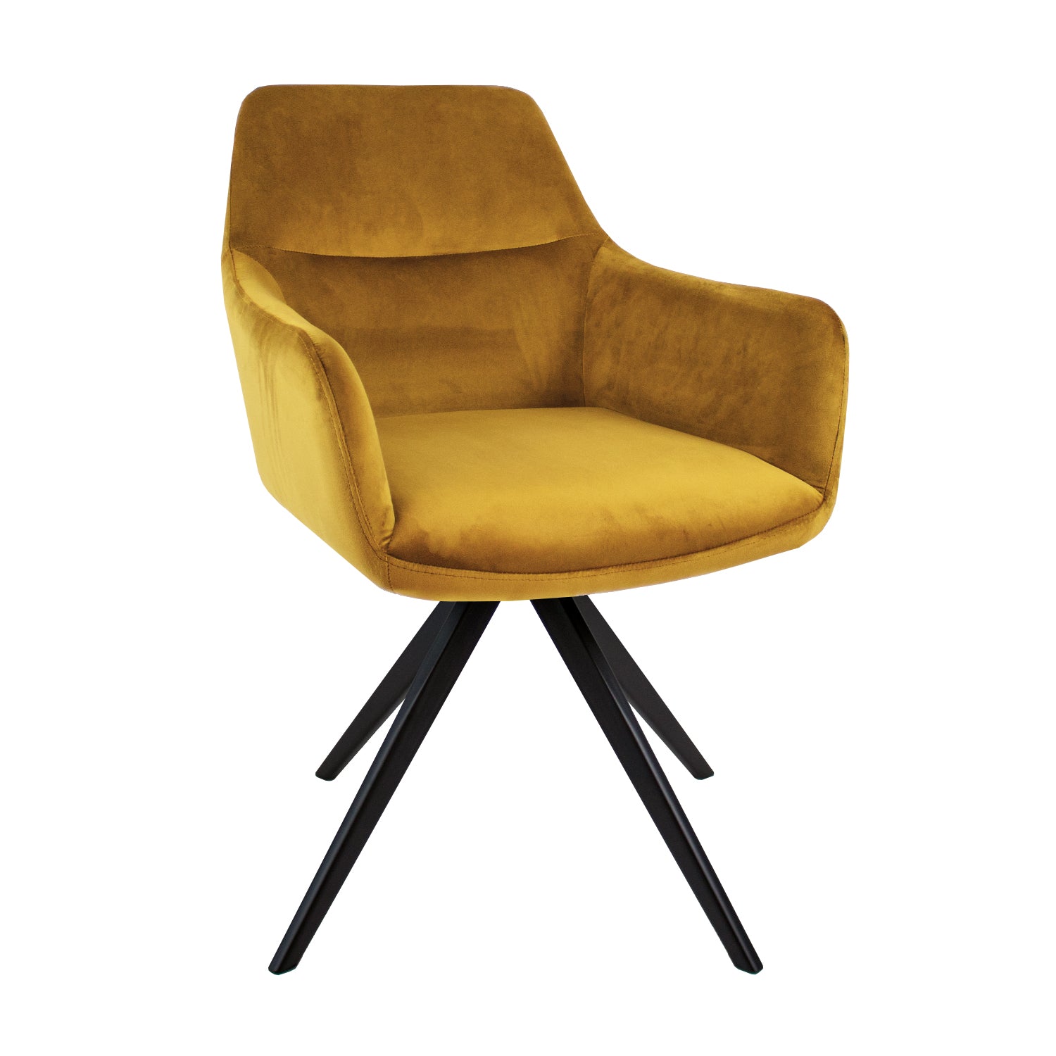 Tom, een symbool van elegantie en verfijning. Gehuld in een tijdloze velvetstof en met een zwart metalen onderstel dat je 360 graden vrijheid geeft om te draaien.