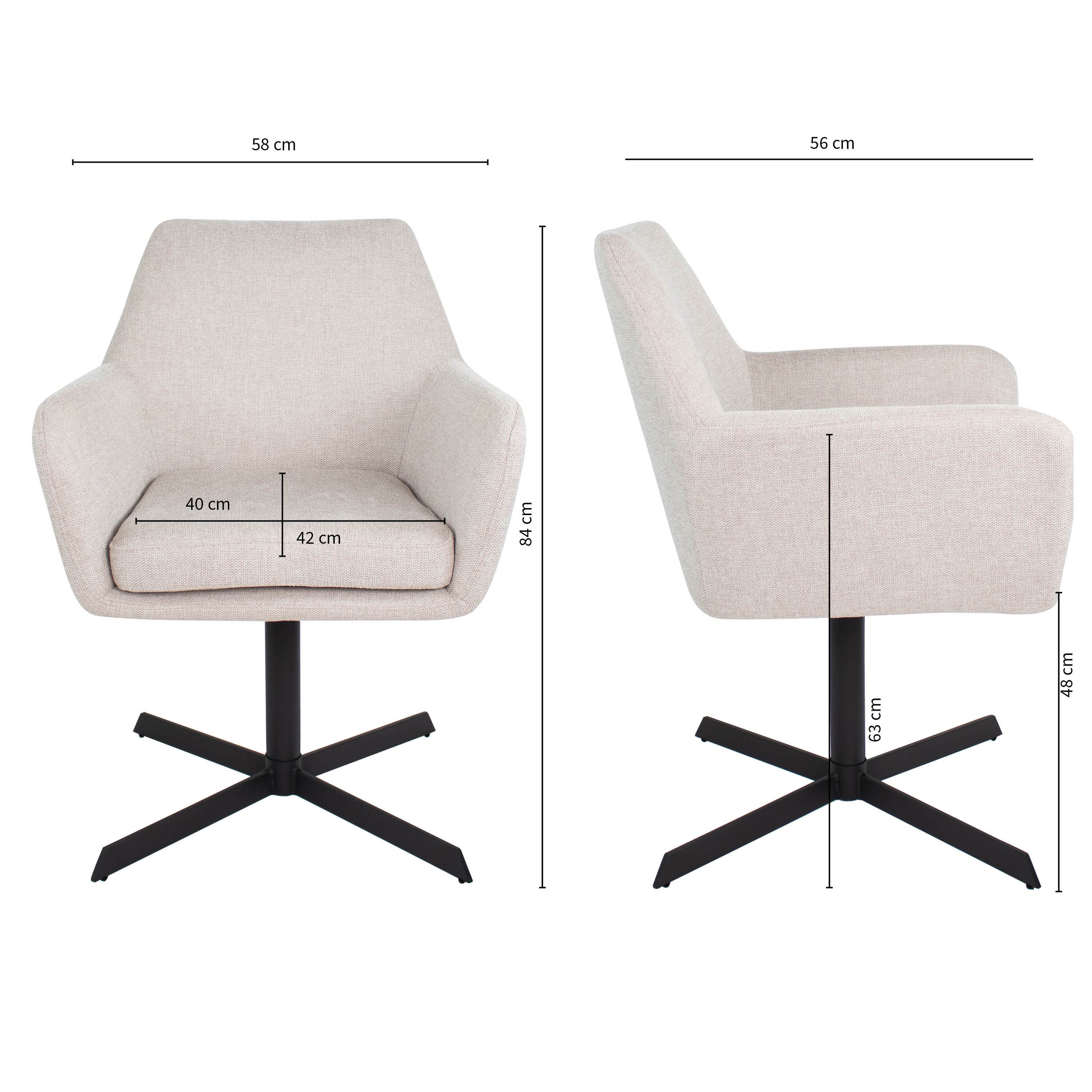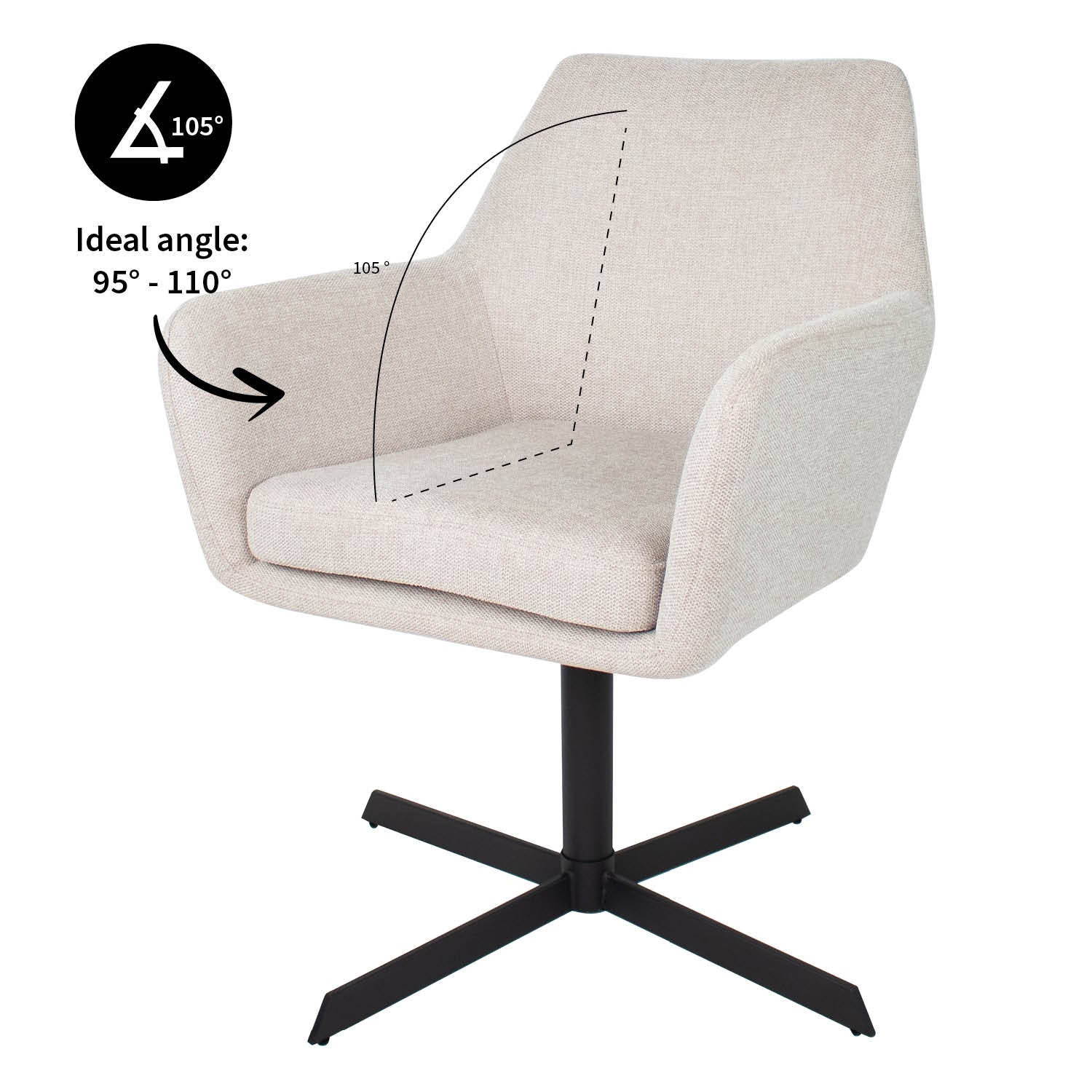 De hoogte van de zitting, gemeten vanaf de vloer. De ideale zithoogte bevindt zich tussen de 40 en 46 cm. Je zit het lekkerst met een ruimte van ongeveer 20 cm, tussen de stoelzitting en de onderkant van het tafelblad.